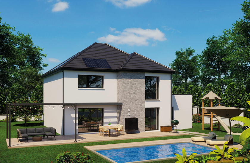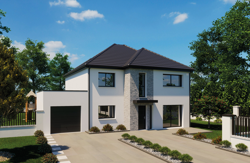 L'isolation est réalisée avec un matériau alvéolaire de nouvelle génération, 100% recyclable. Les façades sont habillées d'un enduit gratté d'un aspect fin et sobre et peuvent être agrémentées en option d'un parement imitation pierre, brique…