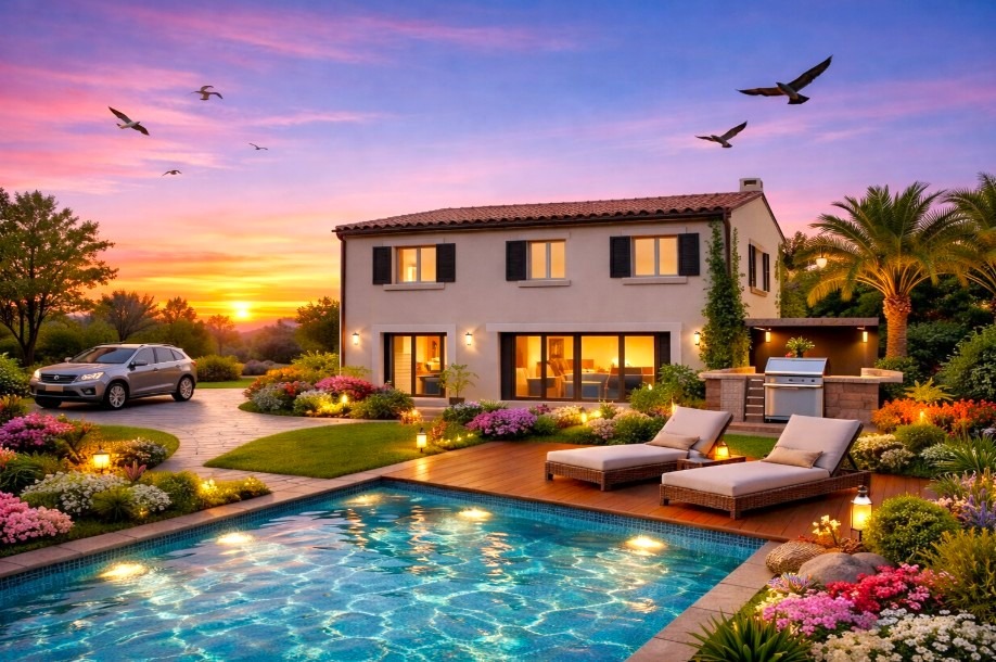 Le prix comprend la construction, l'acquisition du terrain, les frais de notaire, des frais annexes et les assurances obligatoires.