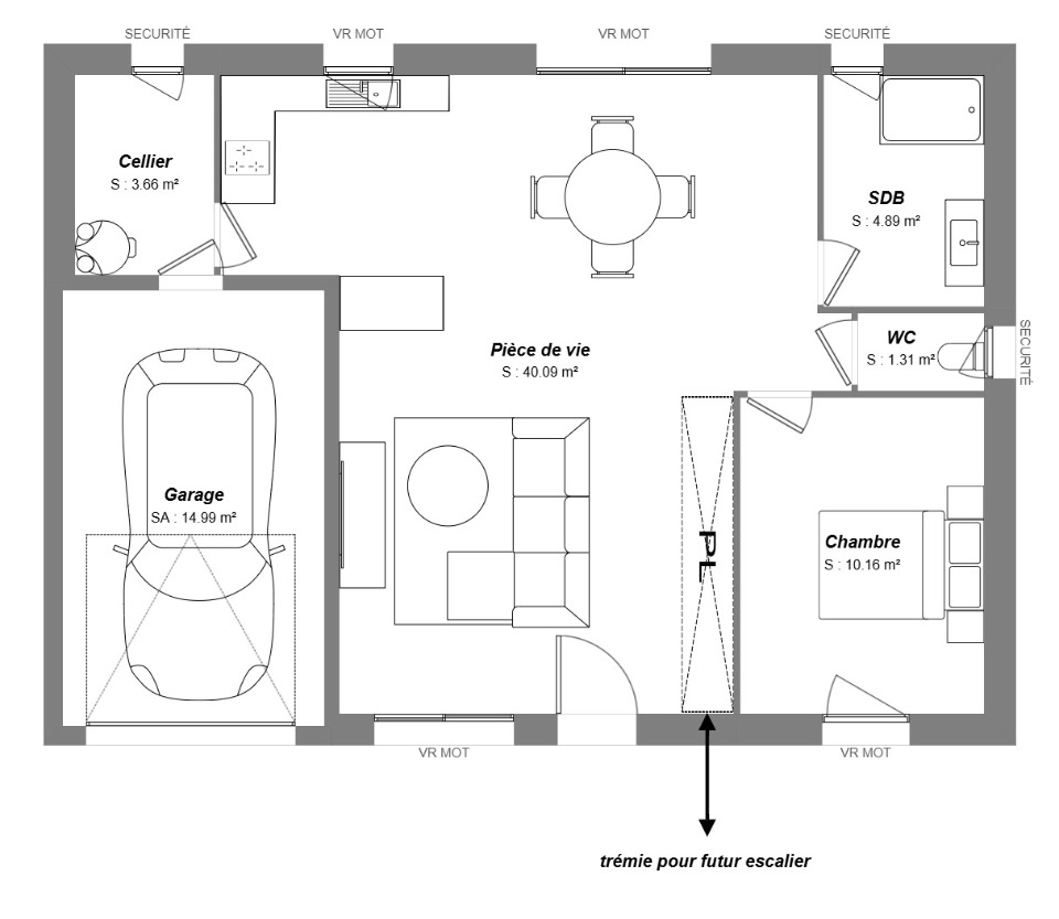 Maison lumineuse de plus de 60 m² offrant des espaces généreux et modulables, conçue pour privilégier confort et convivialité avec une climatisation réversible pour chauffer ou rafraîchir selon les saisons.Elle dispose d'un garage pratique et d'une structure évolutive avec combles aménageables, permettant d'agrandir et personnaliser les volumes selon vos besoins.