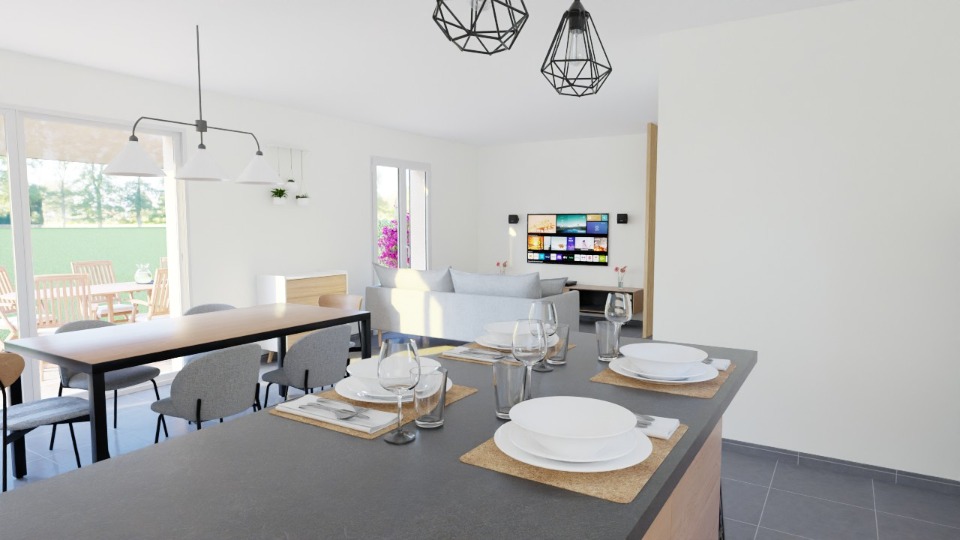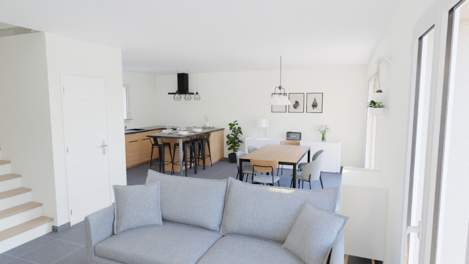 Une grande pièce de vie s'offre à vous avec sa cuisine ouverte moderne,