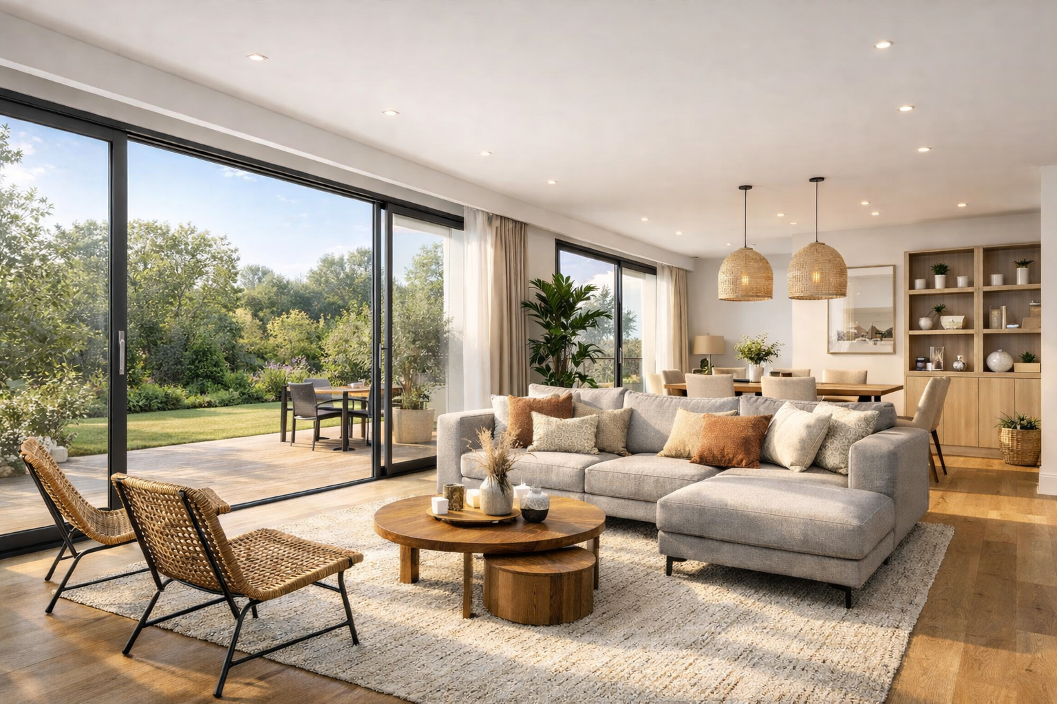 Pensée pour le bien-être de la famille, elle dispose d'un vaste séjour de plus de 43 m², baigné de lumière grâce à ses grandes ouvertures sur l'extérieur!!