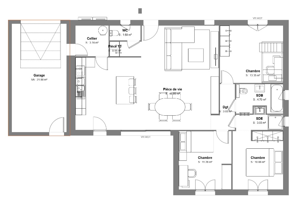 Surface habitable : 100m2.