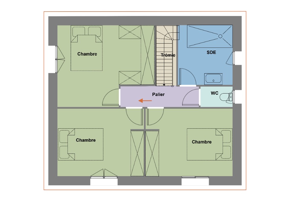 Cette maison compte 2 niveaux. Elle compte quatre chambres, une cuisine et deux salles de bains. Cette maison est neuve.