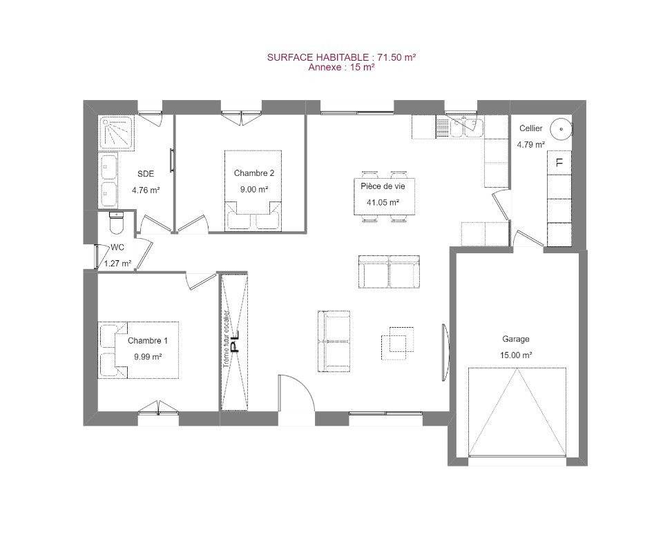 Surface habitable : 71m2.