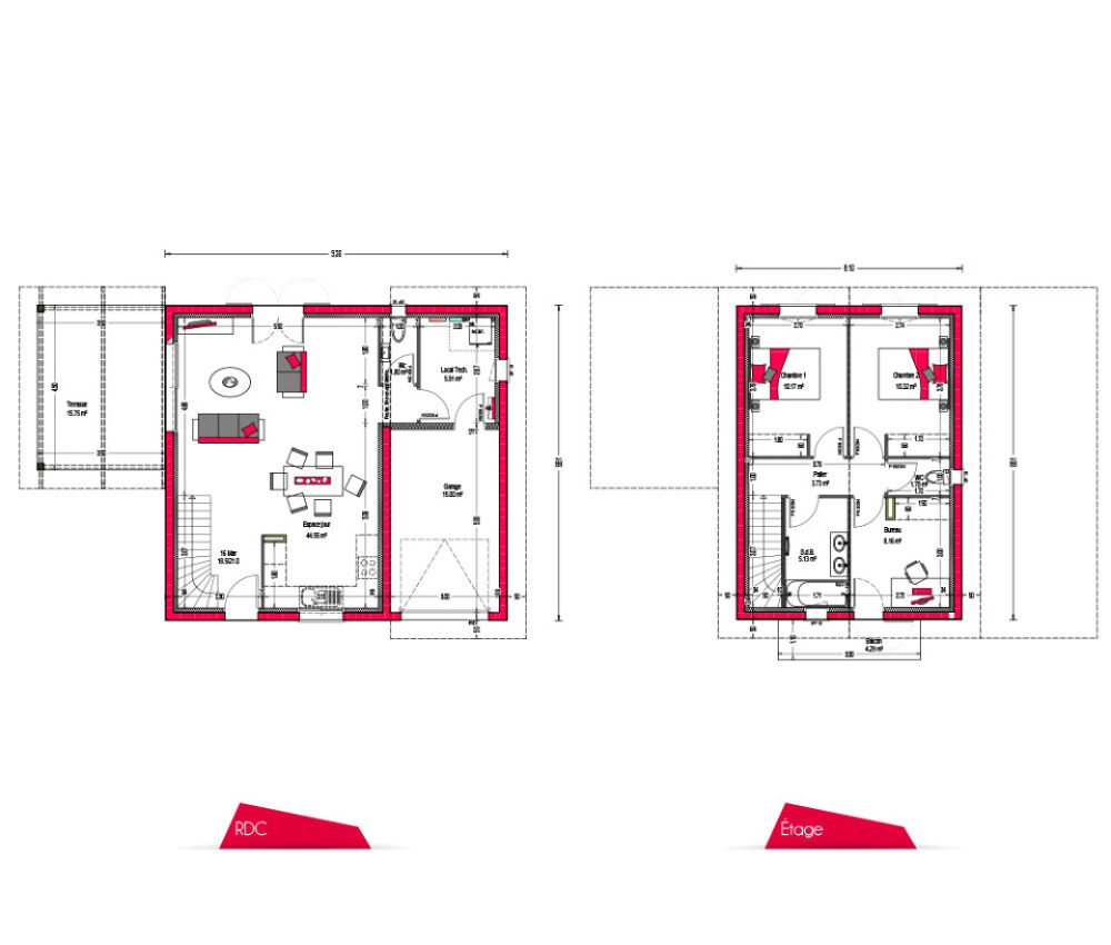 Sur la commune de Boucau, découvrez ce projet de construction proposé par Couleur Villas, sur un terrain hors lotissement.cette maison à étage de 90 m2 avec trois chambres vous offre un cadre de vie confortable et fonctionnel, idéal pour votre famille.