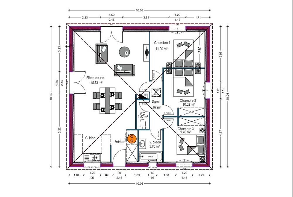 Projet au prix de 186 540 € incluant le terrain , les frais de notaire, la viabilisation, les raccordements, la maison en Prêt à décorer (sans sol des chambres , sans peintures et sans cuisine)