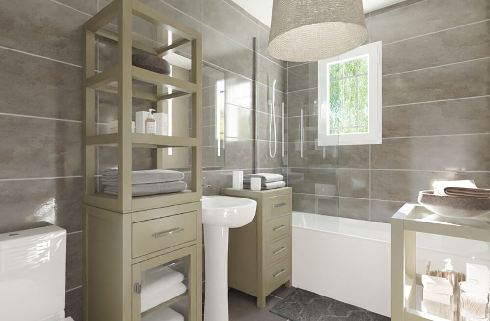 ECLAT est une maison à étage d'une surface totale de 90 m2. Elle est construite sur vide sanitaire et propose au rez-de-chaussée un séjour-cuisine de 35 m2, un WC et d'un garage intégré de plus de 13 m2 donnant accès cellier. L'espace nuit se situe à l'étage. Il se compose de 3 chambres de plus de 9 m2, d'une quatrième chambre avec dressing pour une surface totale de 12,5m2 et une salle de bains avec possibilité d'installer en option un WC. A noter, le garage est compatible avec un futur aménagement intérieur (hors point d'eau). Les menuiseries sont en PVC de couleur blanche, les volets sont quant à eux en bois prépeints en blanc. Plusieurs couleurs d'enduit extérieur sont proposées.