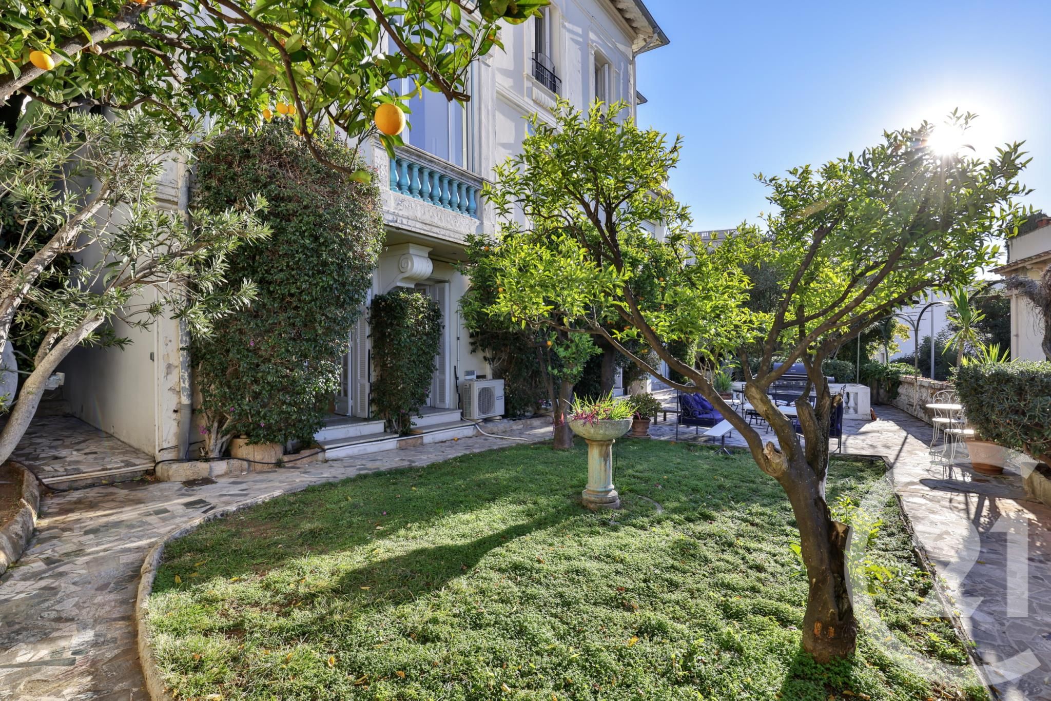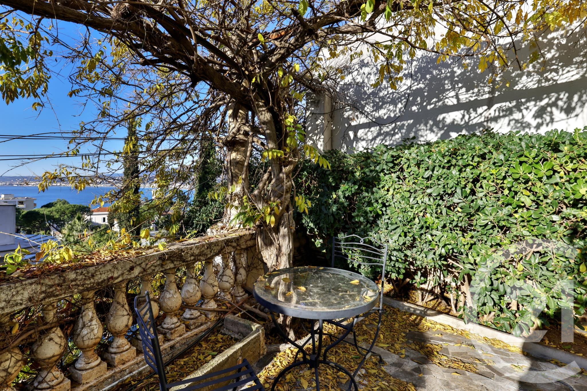 Cet appartement jouit d'une jolie vue sur la mer et d'un jardin privatif arboré très agréable.