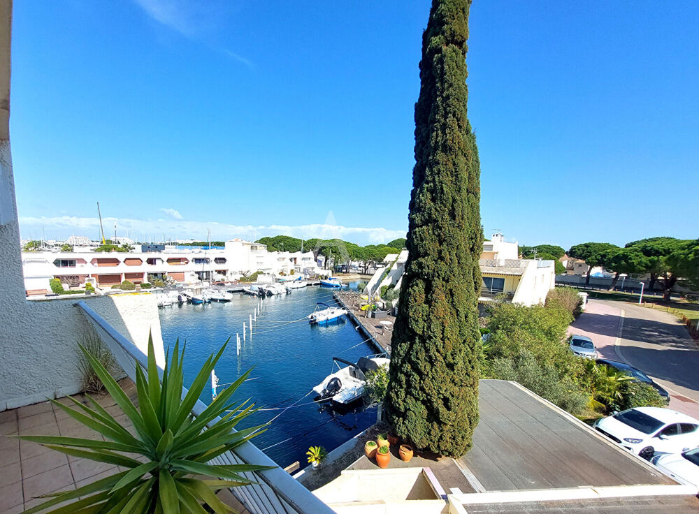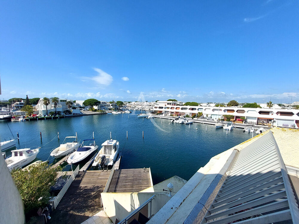 PORT CAMARGUE Superbe Marina en duplex traversante d'une superficie de 84.02 m² , mitoyenne d'un seul côté. Parcelle de terrain privative et un appontement en angle de 16m par 4 m. Elle se compose au 1er niveau d'une pièce de vie de 40 m² comprenant une cuisine américaine aménagée équipée et d'un séjour ouvrant sur une terrasse exposée Ouest avec une vue imprenable sur les marinas. On trouve également à ce niveau une chambre avec placard, une salle d'eau, un wc séparé et plusieurs espaces de rangement. L'étage dessert 2 chambres, une salle de bain, un wc séparé, une terrasse de 7.41 m² et un solarium de 18.30 m². Garage de 17 m² et possibilité de stationner 2 véhicules devant la marina. Copropriété de 10 lots (). Charges annuelles : 360 euros.