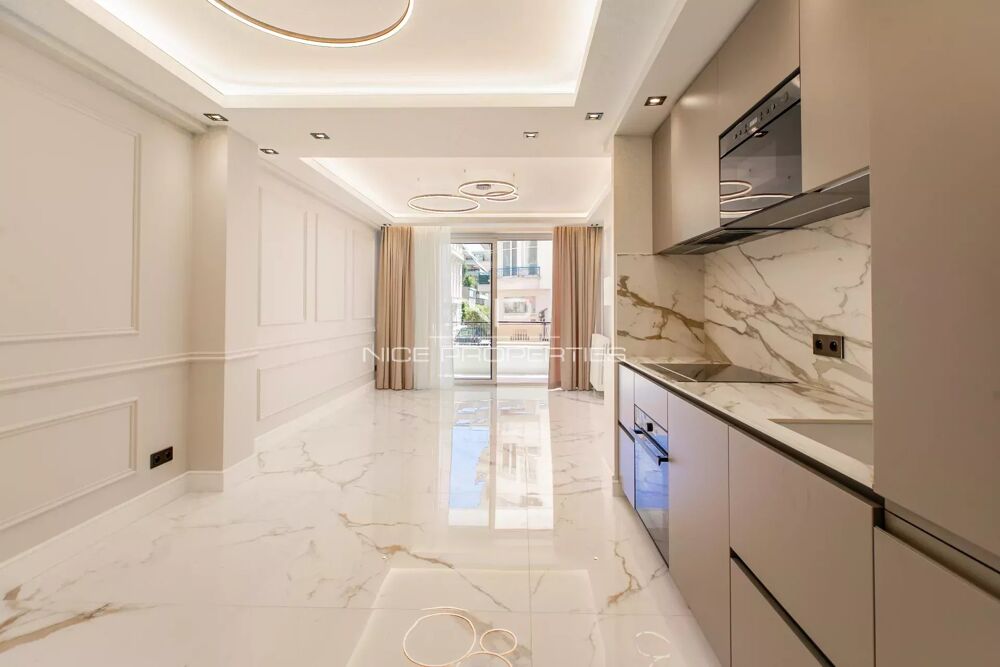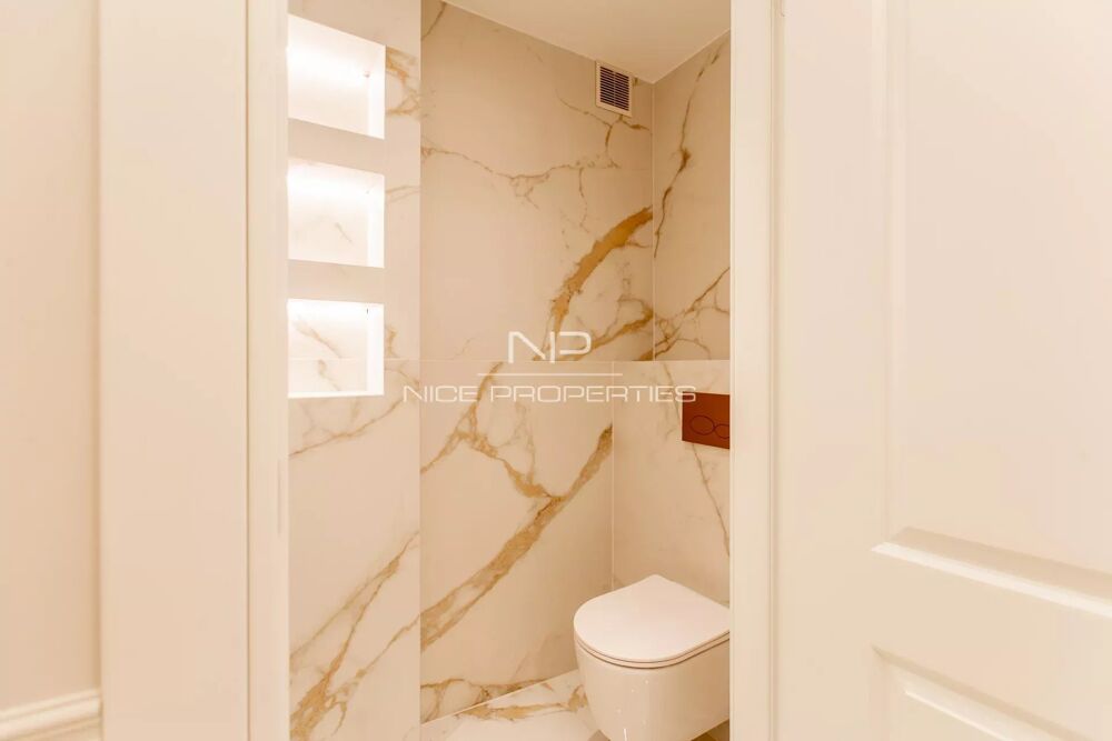 NICE CENTRE / CARRÉ D'OR : Situé dans la zone piétonne, à quelques minutes de la mer et de toutes les commodités, dans un immeuble de grand standing, sublime 3 pièces de 75 m² traversant Sud / Nord, entièrement rénové avec des matériaux haut de gamme et climatisé.