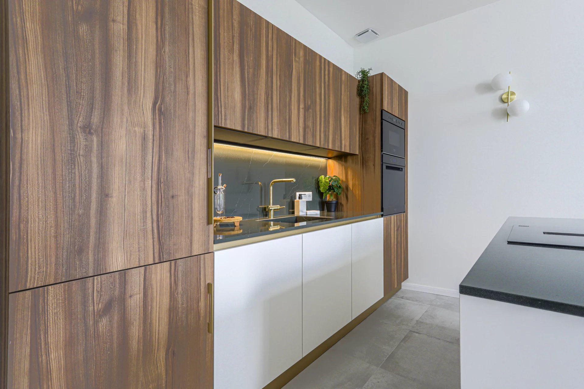 Vaste séjour avec cuisine ouverte équipée, 2 chambres avec leur salle de bains.