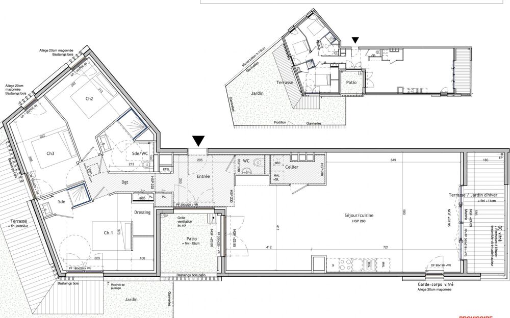 - Ce lot est situé au 1er étage en front de mer, avec une loggia de 10,45m2, et un jardin/terrasse sur l'arrière de 99m2.
