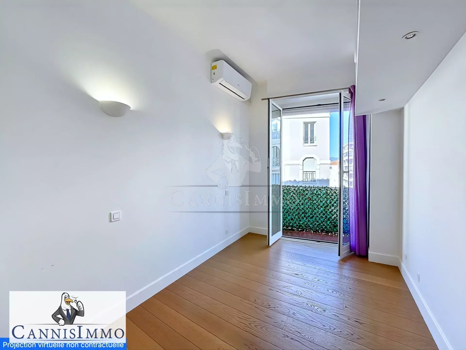 Situé à Cannes Banane, entre la rue d'Antibes et la fameuse Croisette, dans une résidence de standing avec ascenseur et gardien.