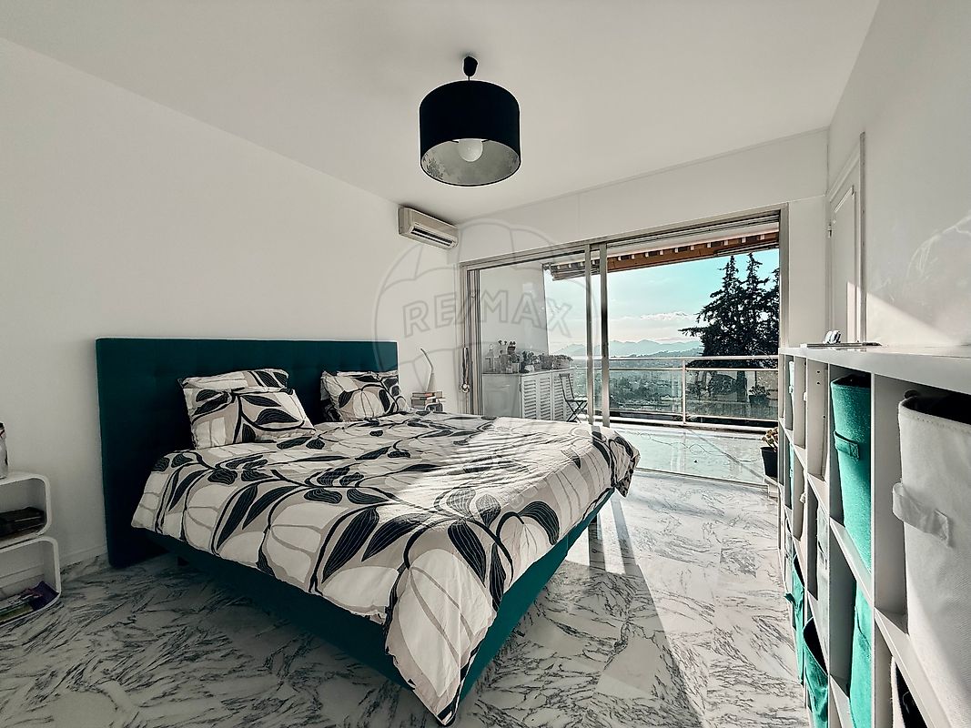 Situé au 2 étage avec ascenseur, il offre dès l'entrée une sensation d'ouverture et de sérénité. Le regard est naturellement attiré vers l'horizon : une vue panoramique spectaculaire sur Cannes, l'Estérel et la Méditerranée, omniprésente et changeante, véritable signature du lieu.