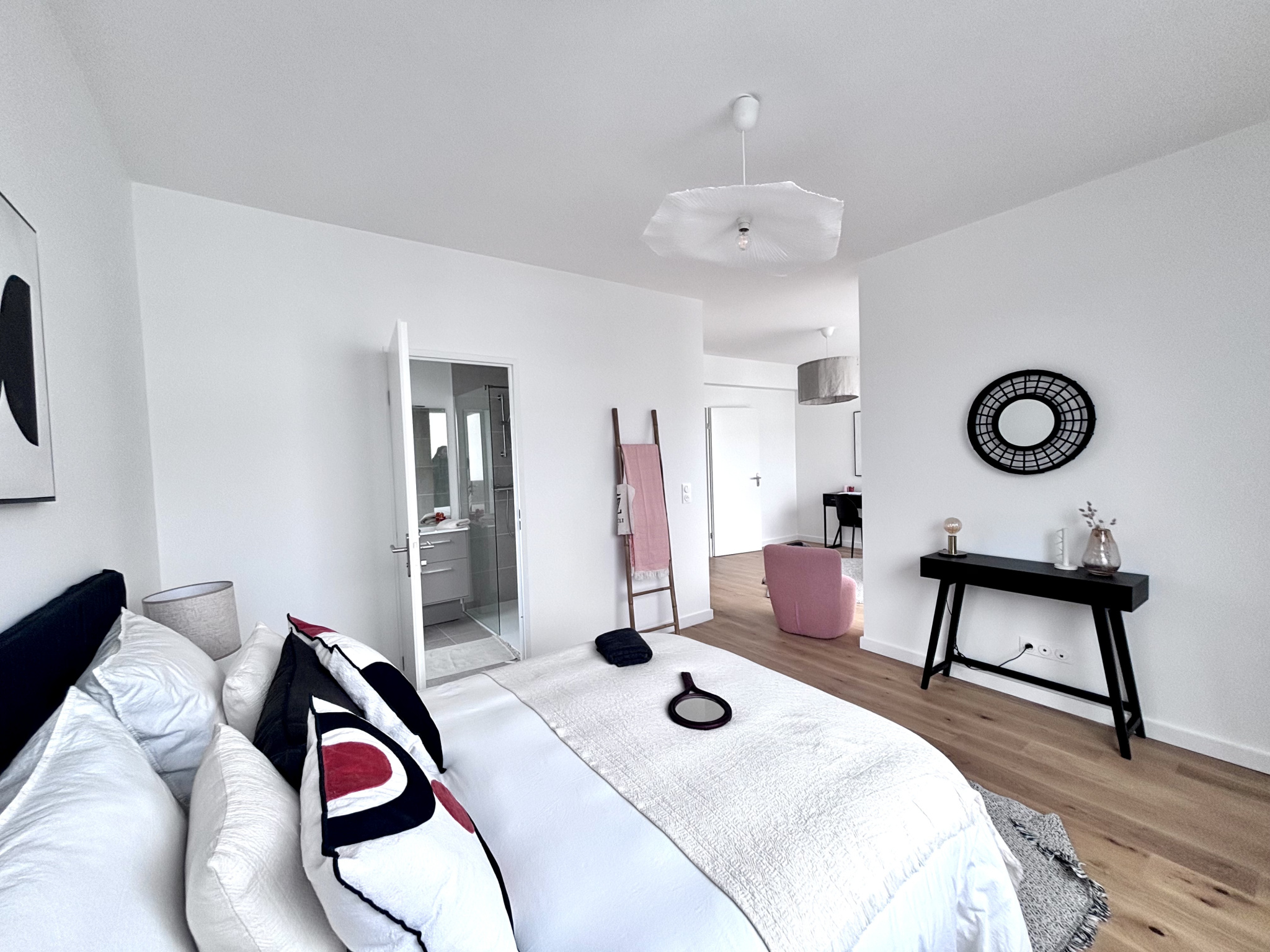 3 grandes chambres dont une de 27m2. 3 suites parentales avec un second extérieur.