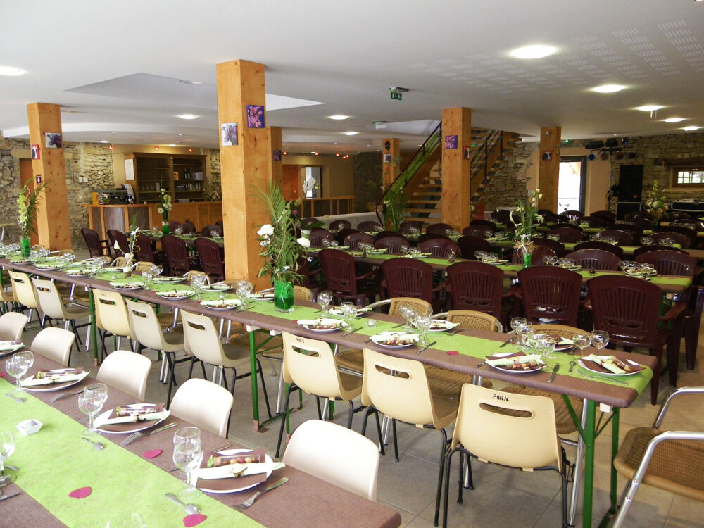 - Salle de réception avec bar (licence IV) d'une surface de 183 m2 offrant une capacité d'accueil de 197 personnes, incluant le personnel. Une terrasse de 150 m2 exposée plein sud pour des moments conviviaux en extérieur. Idéale pour des mariages, séminaires ou événements divers. Cuisine professionnelle. Trois toilettes (hommes, femmes, personnel).