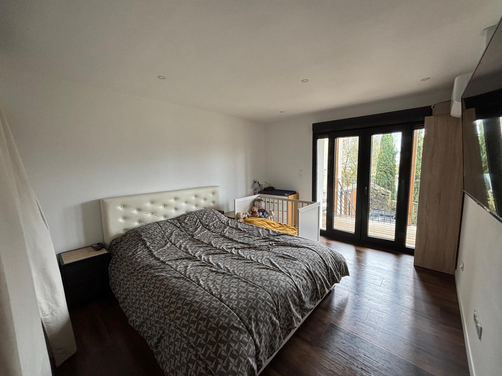 Jardin, balcons, local à vélos, parties communes avec escalier et 3 places de stationnement privées.
