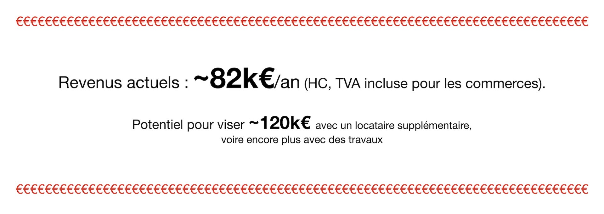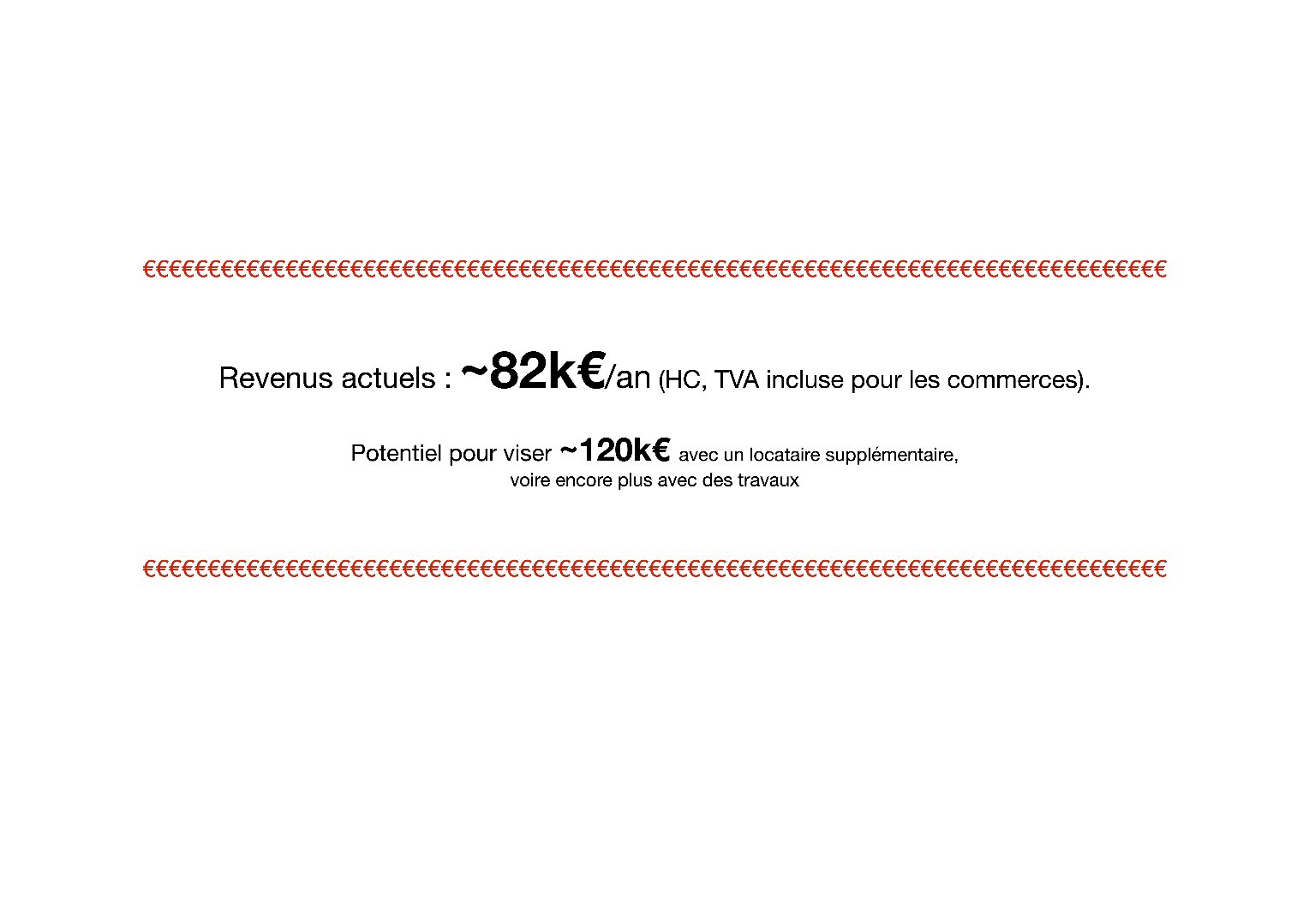 ~82k€/an de revenus à ce jour (TVA incluse pour les commerces).