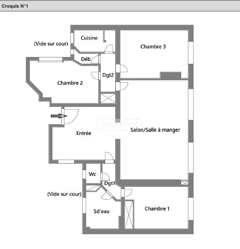 Il se compose d''une entrée, d''un séjour / salle à manger d''environ 23,5 m², lumineux et agréable, de trois chambres aux surfaces confortables (environ 11,5 m², 9,5 m² et 11,2 m²), d''une cuisine indépendante, d''une salle d''eau ainsi que de WC séparés .