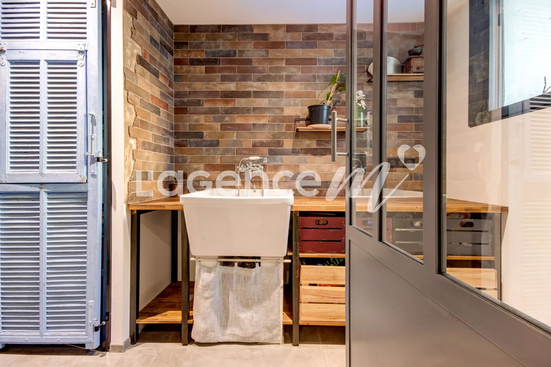 Vitrée du plus bel effet Atelier elle devient modulable, et ouvre sa verrière vers une arrière cuisine / buanderie séparée en annexe.