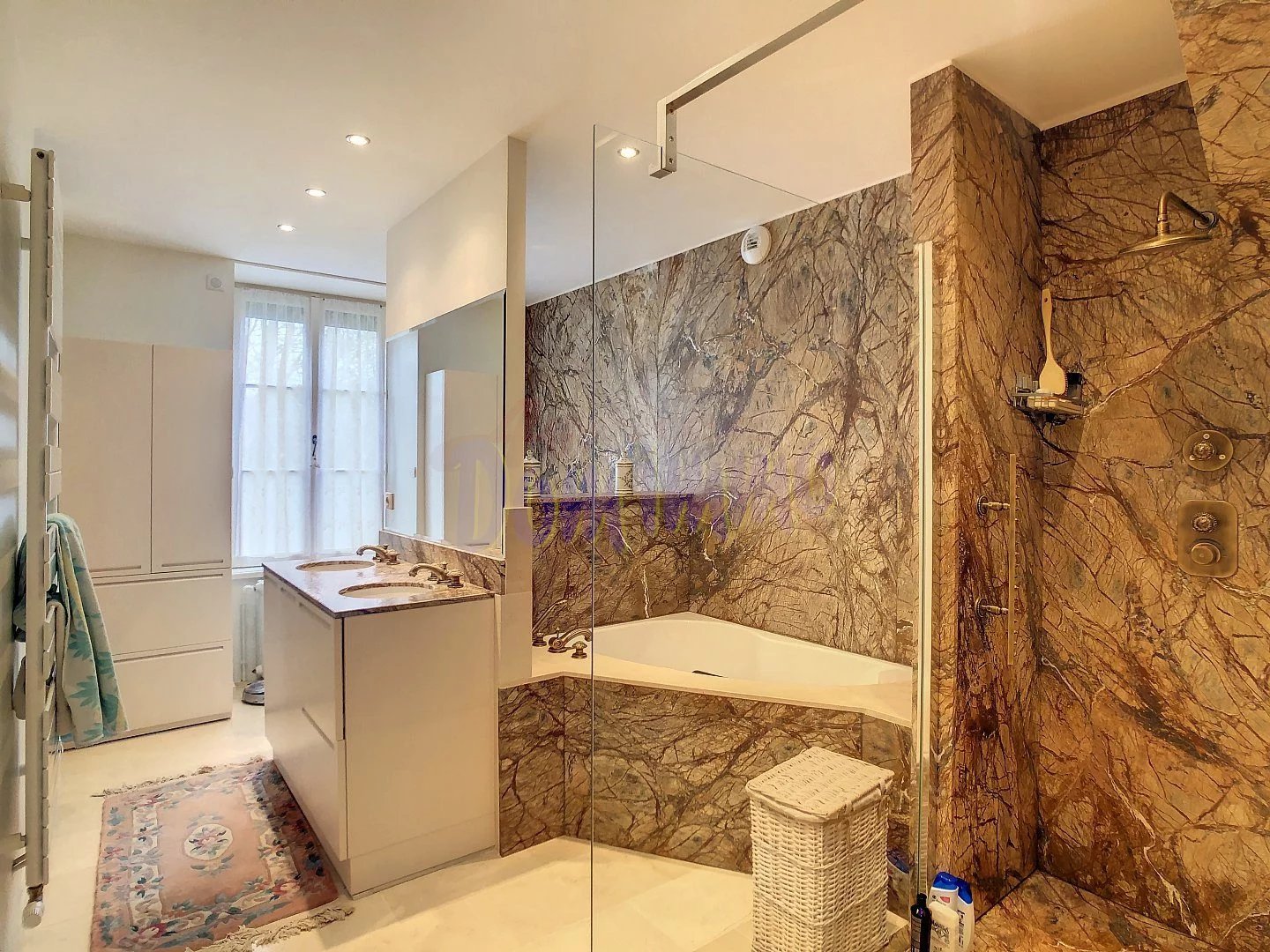 Le côté privatif de la propriété se compose d'un bureau, d'une somptueuse suite parentale avec dressing, d'une salle de bains en marbre et de WC séparés.