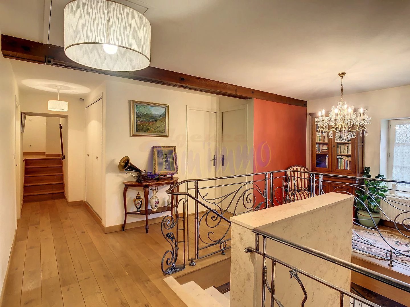 Un escalier en fer forgé, véritable œuvre d'art, vous mène à l'étage, où trois chambres spacieuses de plus de 20 m² vous attendent, chacune avec sa propre salle d'eau/WC, dont une avec salle de bains.