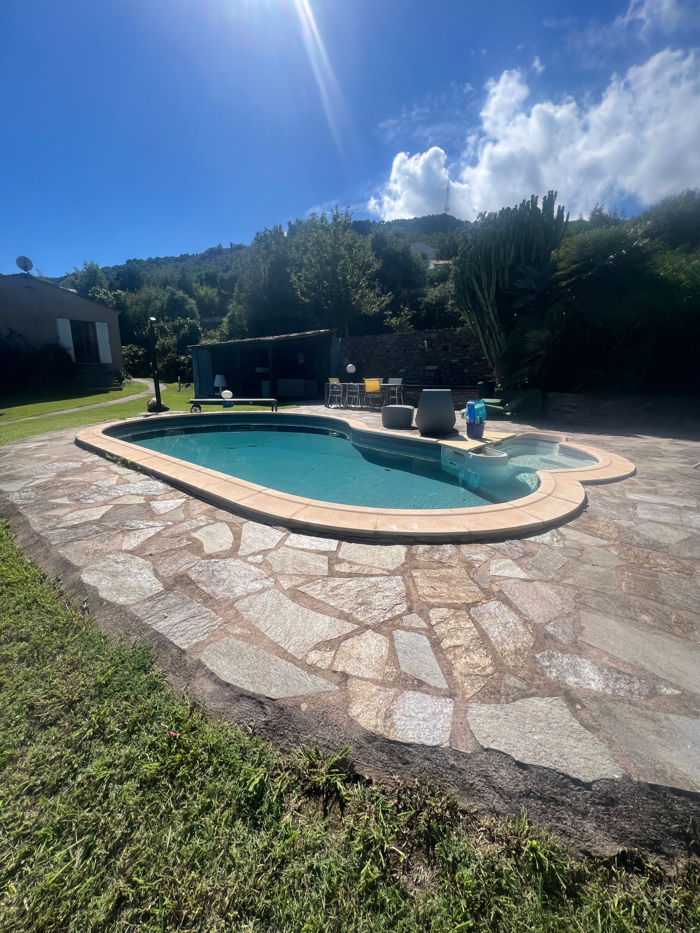 L'atout de cette propriété est son espace piscine aménagé avec pool house et cuisine d'été sous pergola ainsi qu'un magnifique jardin avec arbres fruitiers (clementines, citrons, mandarine et pamplemousse).