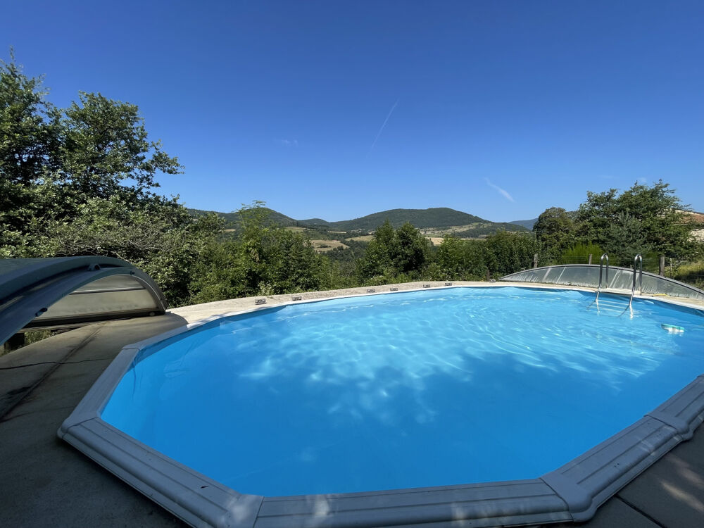 Coin piscine avec son pool-housse et une vue imprenable sur les montagnes environnantes.
