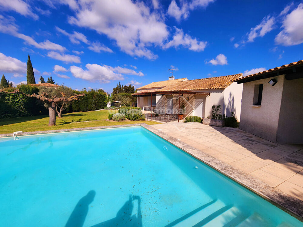 Exclusivité, Maison de plain pied 131 m² avec garage de 36 m², jardin paysagé et piscine chauffée sur 1964 m². Dans un environnement calme et recherché, découvrez cette maison complètement rénovée offrant de belles prestations. Elle offre une belle pièce à vivre lumineuse ainsi que 4 suites parentales avec wc, et un indépendant, une buanderie, une cave, le tout est implanté sur un jardin paysagé avec piscine chauffée de 5 X 10 sur un terrain de 1964 m² soigneusement entretenus. Idéal pour une maison secondaire ou pas à proximité de la gare TGV Avignon (20 mins en voiture) , de Marseille (1h en voiture). Idéalement situé dans le triangle des Alpilles les Baux de Provence, Maussane et Saint Rémy. A ne pas manquer Les informations sur les risques auxquels ce bien est exposé sont disponibles sur le site Géorisques : www. georisques. gouv. fr