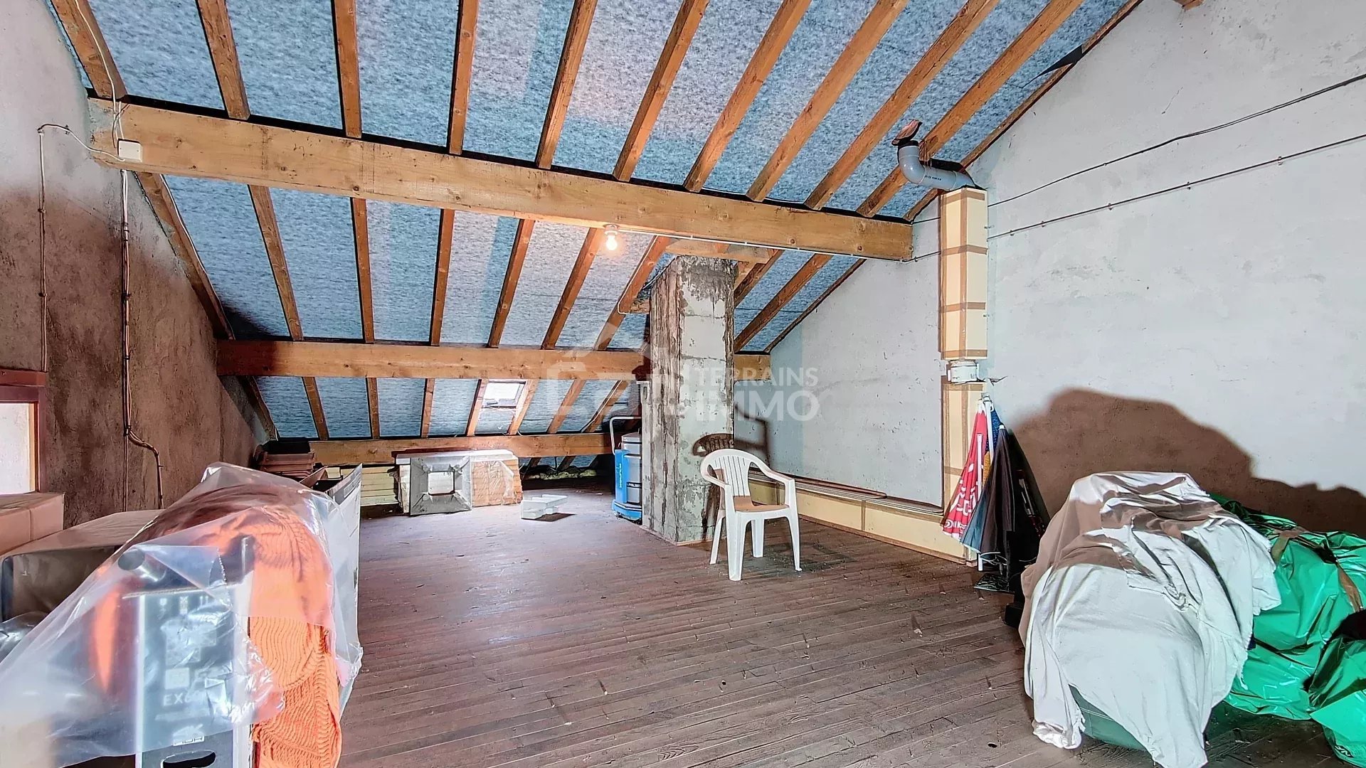 Grand grenier avec belle hauteur sous plafond, offrant un potentiel d'aménagement supplémentaire