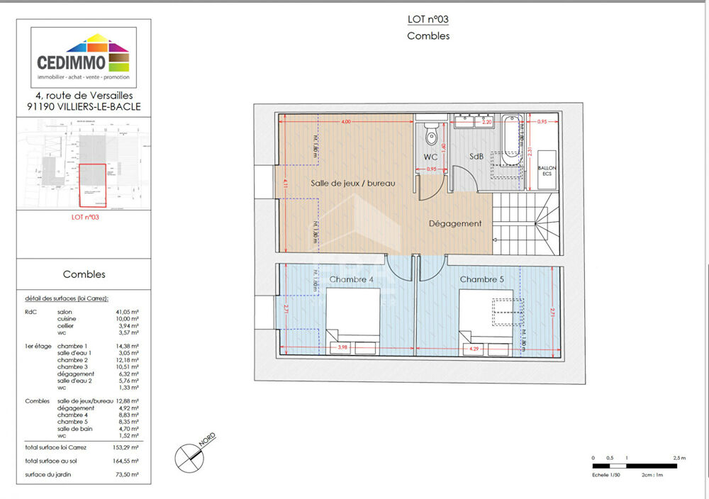 ERA Villaroy-SQY IMMO, votre agence Immobilière à Villaroy vous propose cette maison de ville, type Triplex de 8 pièces dans cet immeuble entièrement rénover, situé en plein centre de Villiers et proche de toutes commodités (transports, BUS, Futur ligne 18, CEA, grandes écoles Polytechnique, HEC, commerces) ...D'une superficie de 153,19 m2 habitable sur 165m2 au sol, cette maison de ville se compose, au rez-de-chaussée : d'une cuisine / salon de 42m2, cellier, WC. Au premier étage : un dégagement qui dessert trois chambres dont une suite parentale avec SDE, une salle d'eau, un WC. Au deuxième étage : combles aménagés en deux chambres, un espace ludique, un WC avec une salle de bains. Viennent compléter ce bien, deux emplacements de stationnements privatifs extérieurs et un espace jardin de 74m2 avec une terrasse de 36M2.