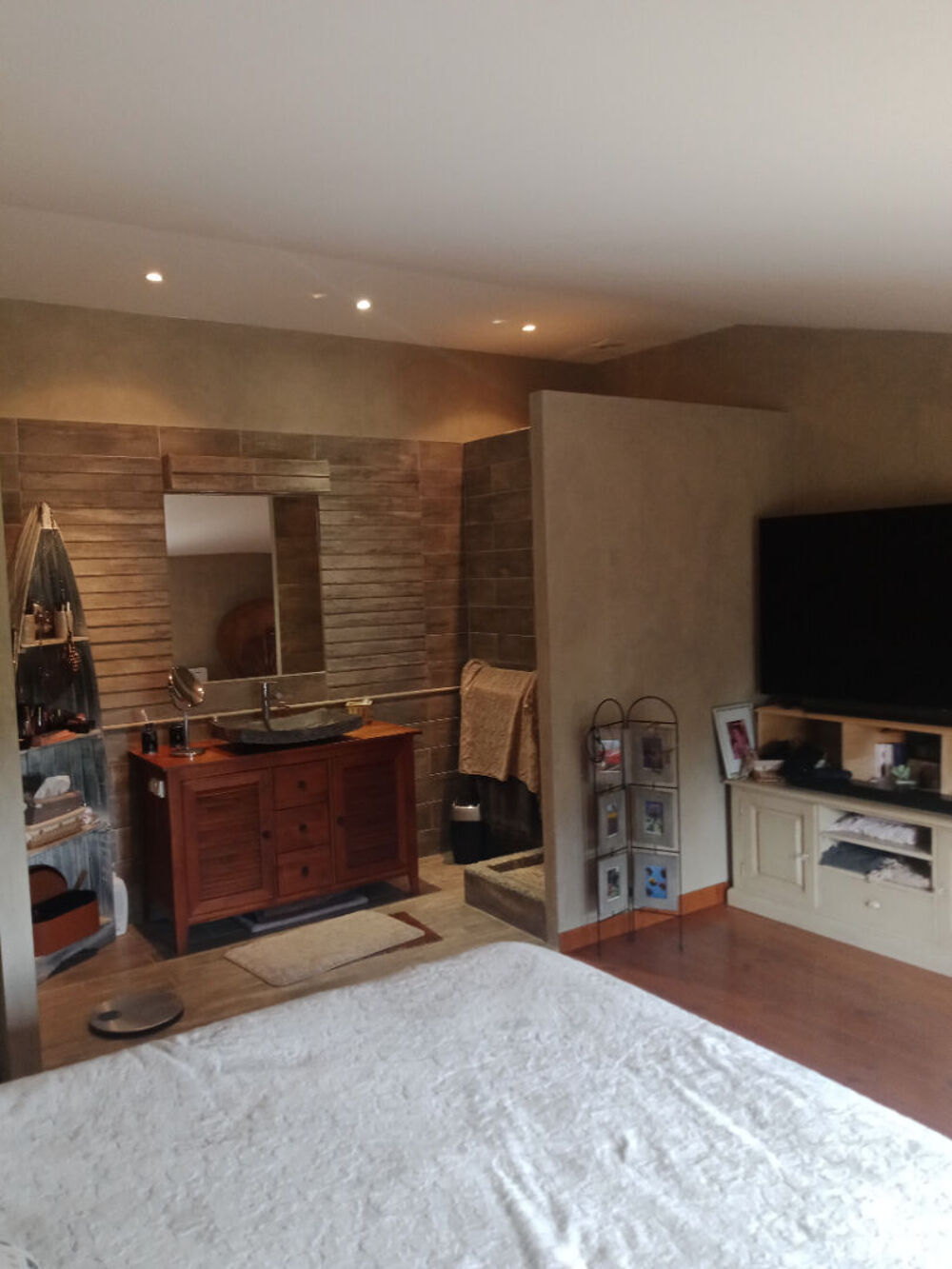 A L'étage : 2 belles chambres avec chacune sa salle d'eau et une 3ème pièce pouvant faire office de bureau, pour 150m²