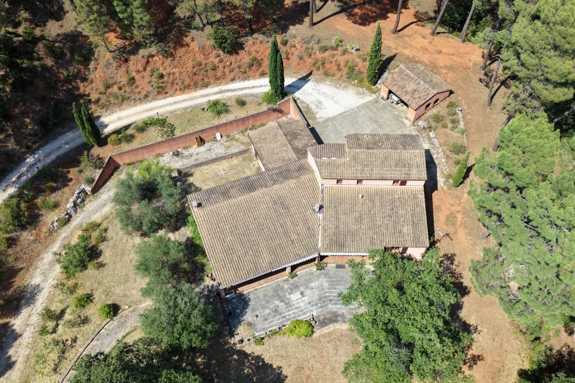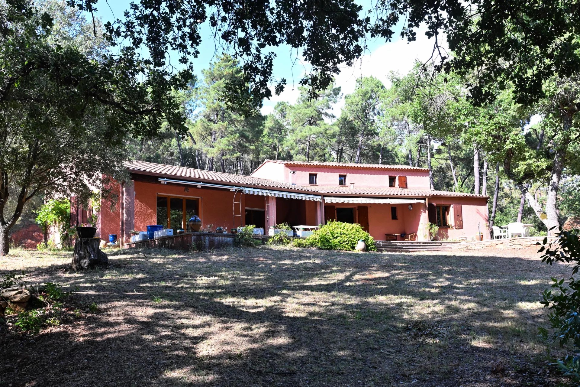 Nichée au cœur d'un domaine boisé d'un hectare et demi, entourée de pins et baignée de lumière, la maison arbore les teintes chaleureuses de l'ocre local et offre des volumes généreux où chacun trouvera sa place.
