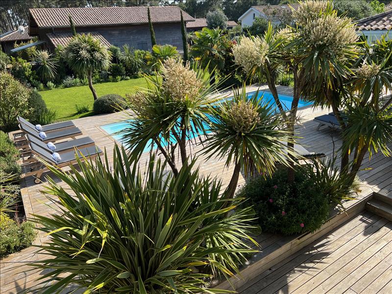 A l'extérieur, terrasse bois, piscine, pool house et jardin paysager!