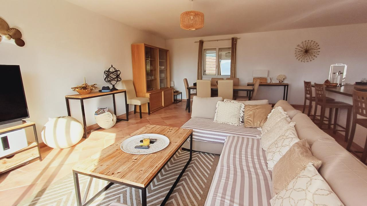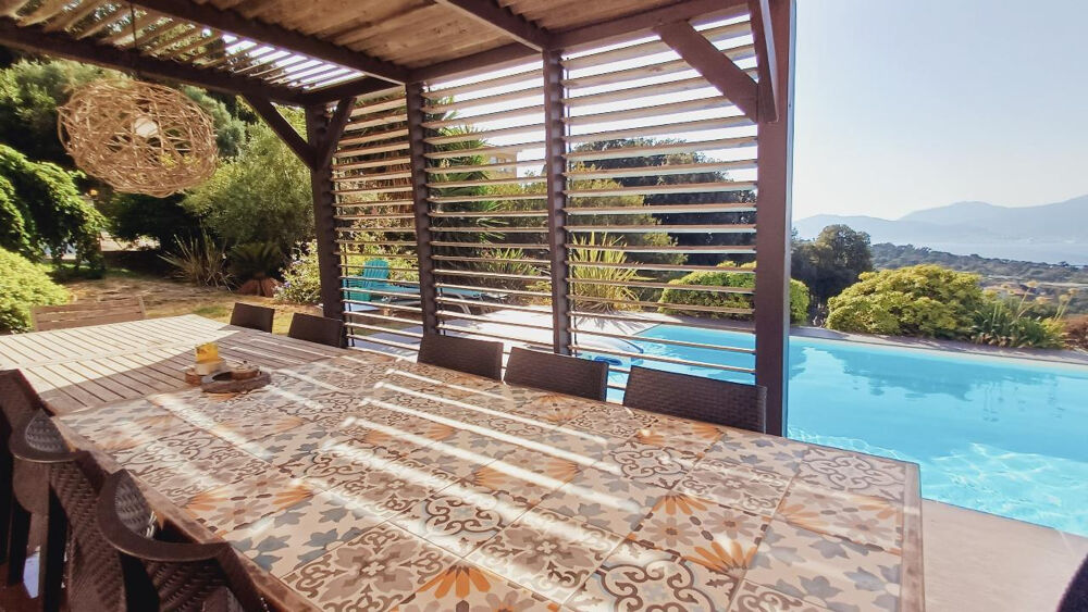 L'Agence Mariani a le plaisir de vous présenter cette superbe villa de 200 m2 habitables, répartie sur deux niveaux. Édifiée sur un terrain paysager de 1 400 m2 offrant une vue dégagée sur le Golfe d'Ajaccio et dominant la station balnéaire de Porticcio. Cette villa T8 est composée de deux logements distincts. Au rez-de-chaussée se trouve un T4 comprenant : • Un séjour convivial avec cuisine ouverte, donnant sur une terrasse avec accès direct à la piscine. • Une buanderie. • Deux grandes chambres. • Une salle d'eau. • Un dressing. • Une suite parentale avec salle d'eau attenante. À l'étage se trouve un second T4, comprenant : • Un vaste séjour lumineux. • Une cuisine américaine ouverte sur une belle terrasse. • Trois confortables chambres avec placards intégrés. • Une grande salle de bain. Extérieur et atouts supplémentaires • Terrain arboré et clôturé, nécessitant peu d'entretien. • Piscine 8x4 m, parfaite pour profiter des beaux jours. • Environnement calme et résidentiel, à proximité des plages et commodités. Cette villa est idéale pour une grande famille ou un investissement locatif, avec la possibilité de générer un revenu grâce aux deux logements. Une opportunité rare à découvrir sans tarder !