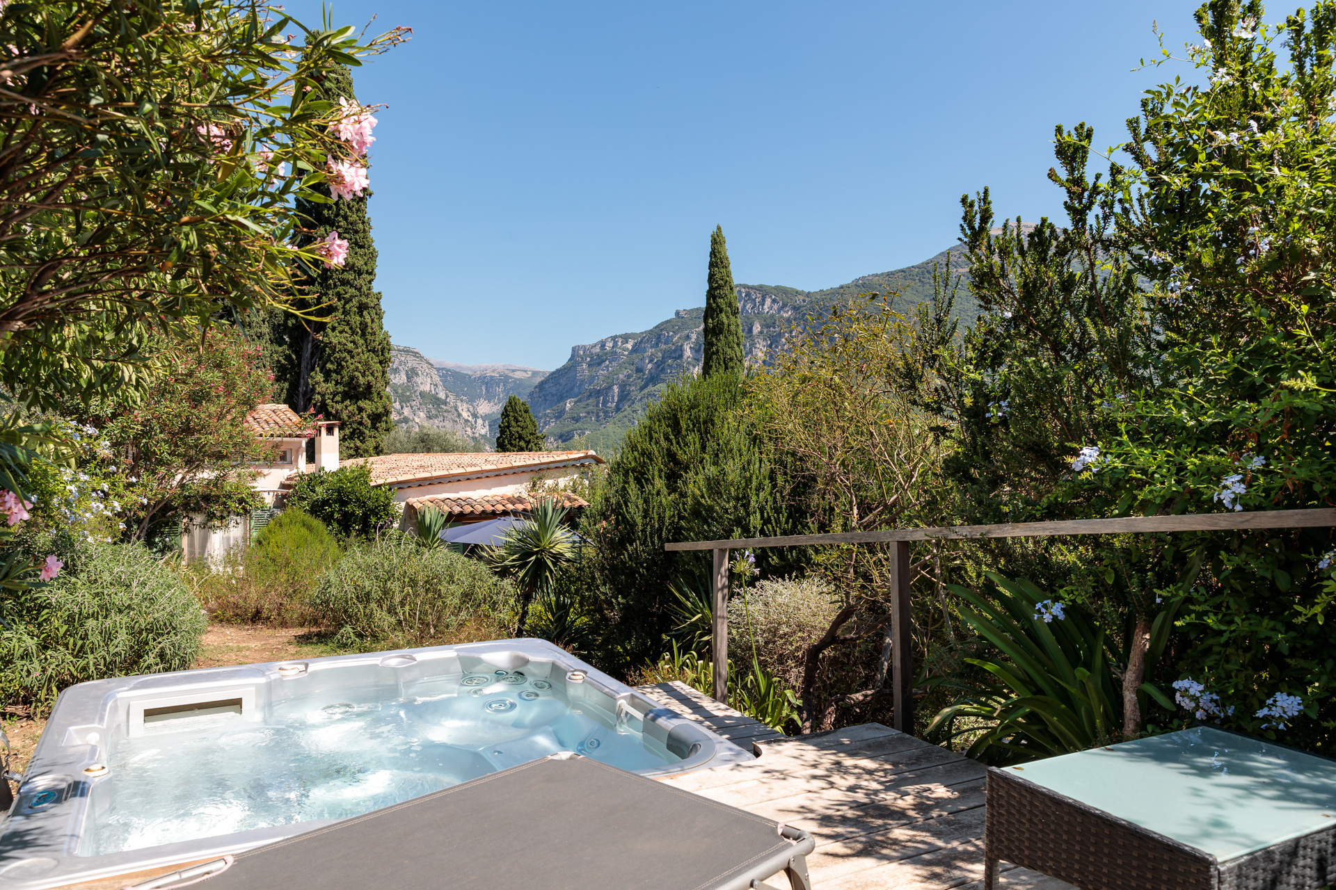 Un spa avec vue dégagée sur les montagnes environnantes