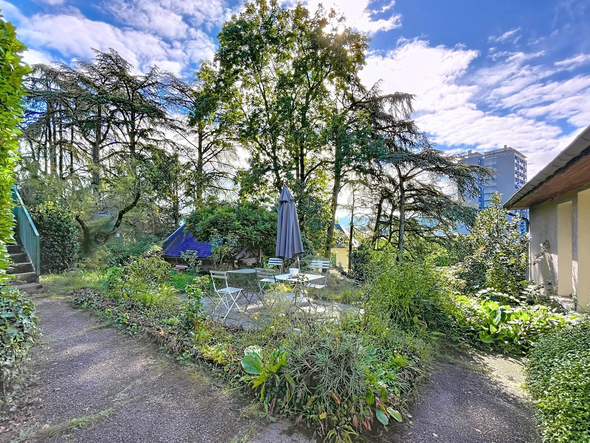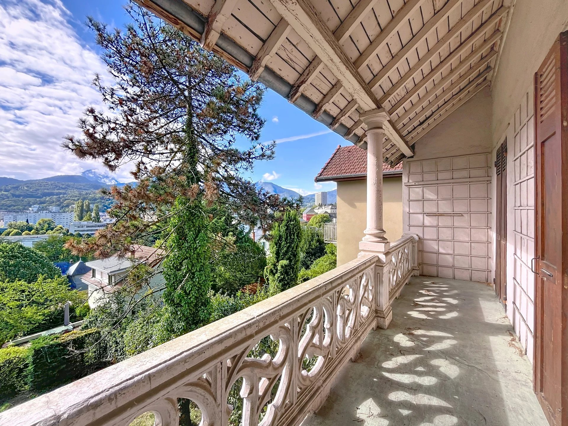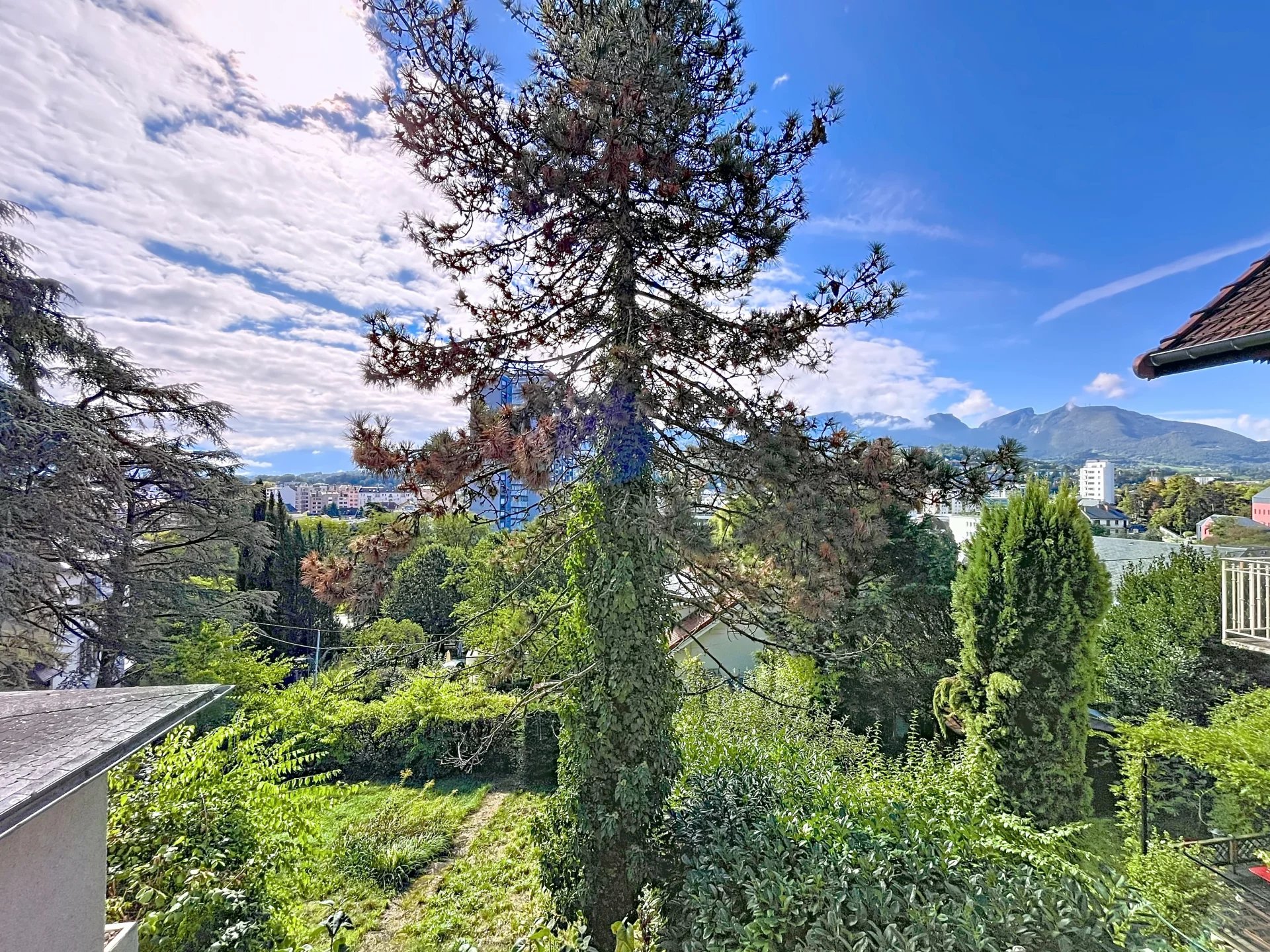 Cette maison se compose de, au rez-de-chaussée une belle entrée avec rangement , un WC avec point d'eau, un salon/ séjour très lumineux sur demi niveau avec une cheminée centrale offrant une superbe vue panoramique sur Chambéry et les montagnes, une cuisine conviviale s'ouvre sur une vaste terrasse et jardin arboré, idéal pour profiter des beaux jours.