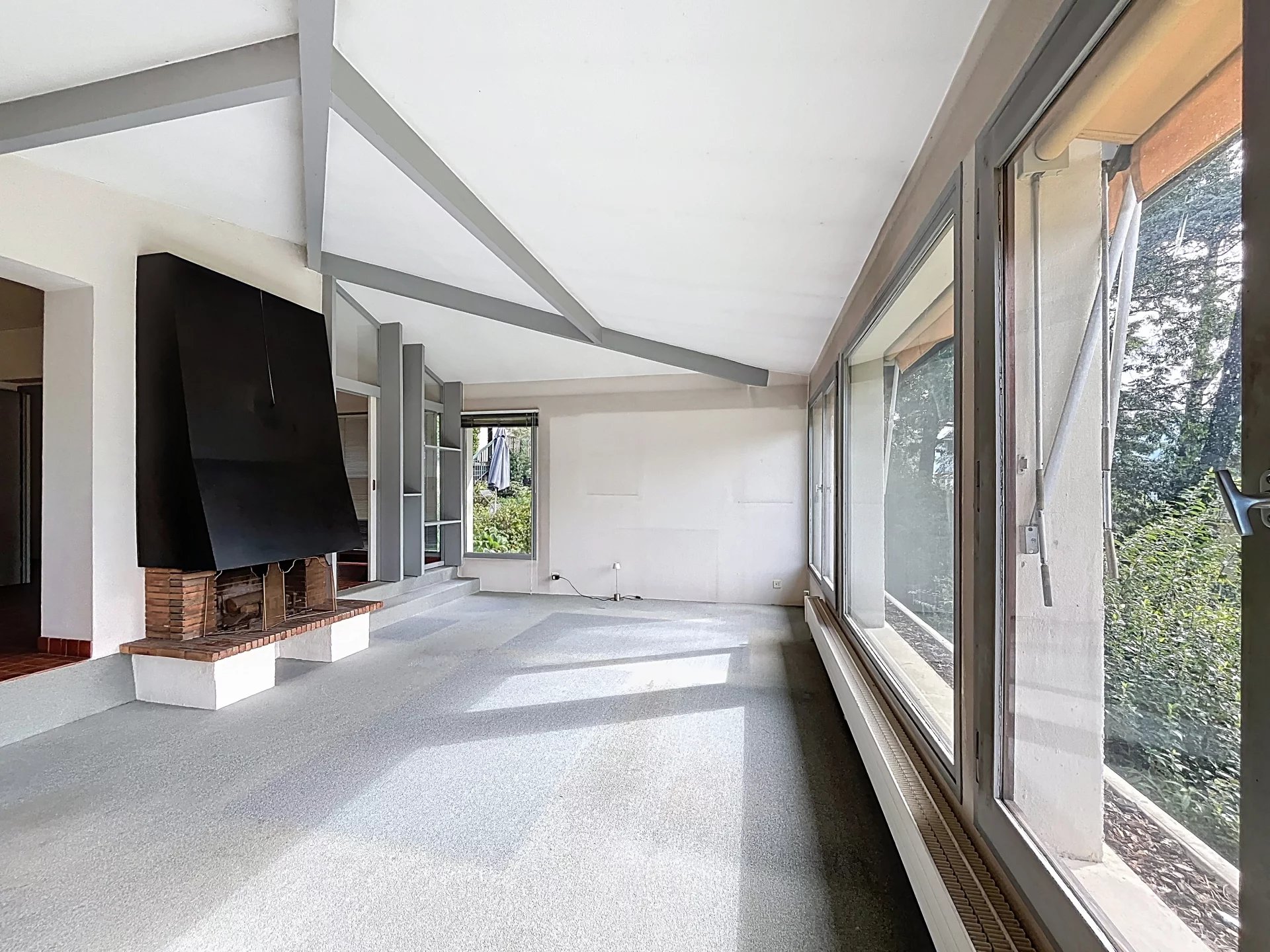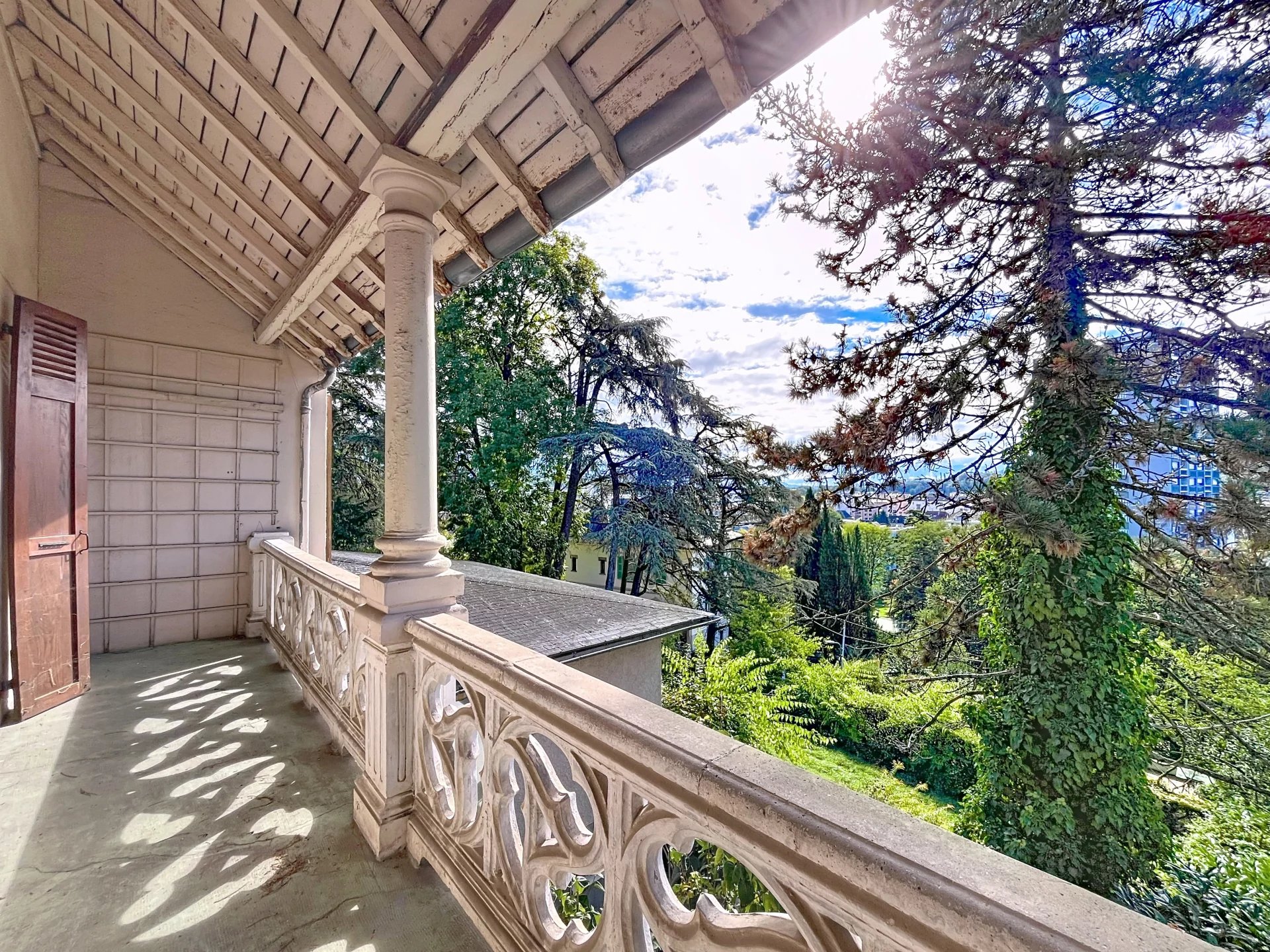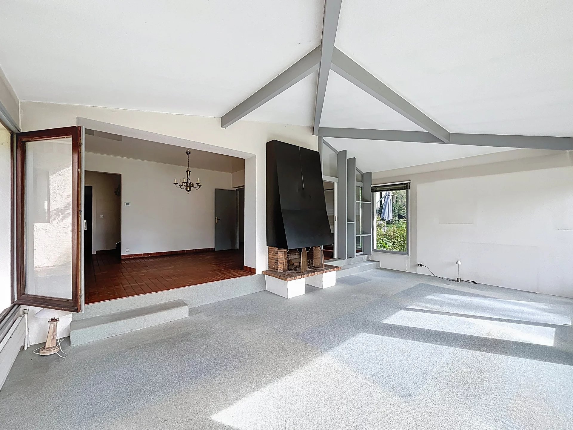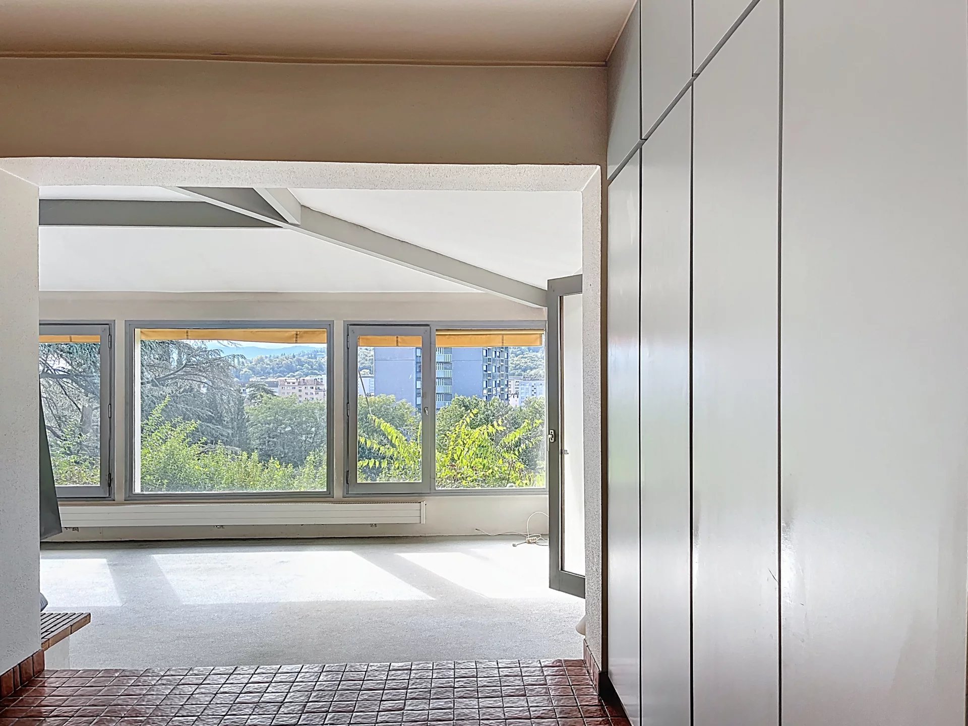 Cette maison se compose de, au rez-de-chaussée une belle entrée avec rangement , un WC avec point d'eau, un salon/ séjour très lumineux sur demi niveau avec une cheminée centrale offrant une superbe vue panoramique sur Chambéry et les montagnes, une cuisine conviviale s'ouvre sur une vaste terrasse et jardin arboré, idéal pour profiter des beaux jours.