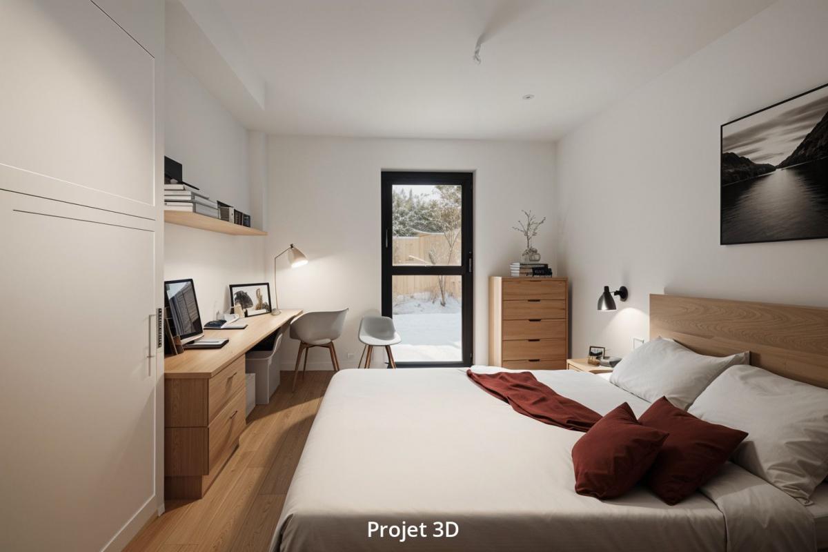 Vous trouverez au rez-de-chaussée une entrée avec placard, une vaste pièce de vie exposition Sud-Ouest, séjour, cuisine, buanderie,... et accéderez à votre terrasse et votre jardin.