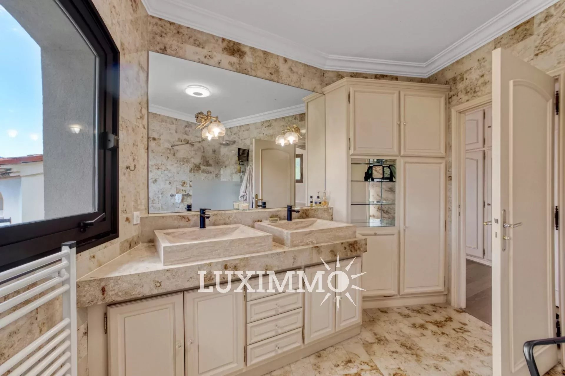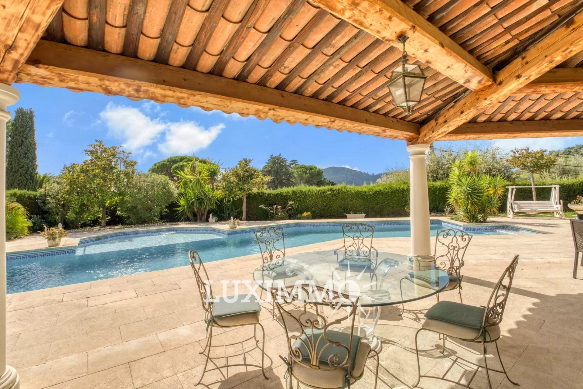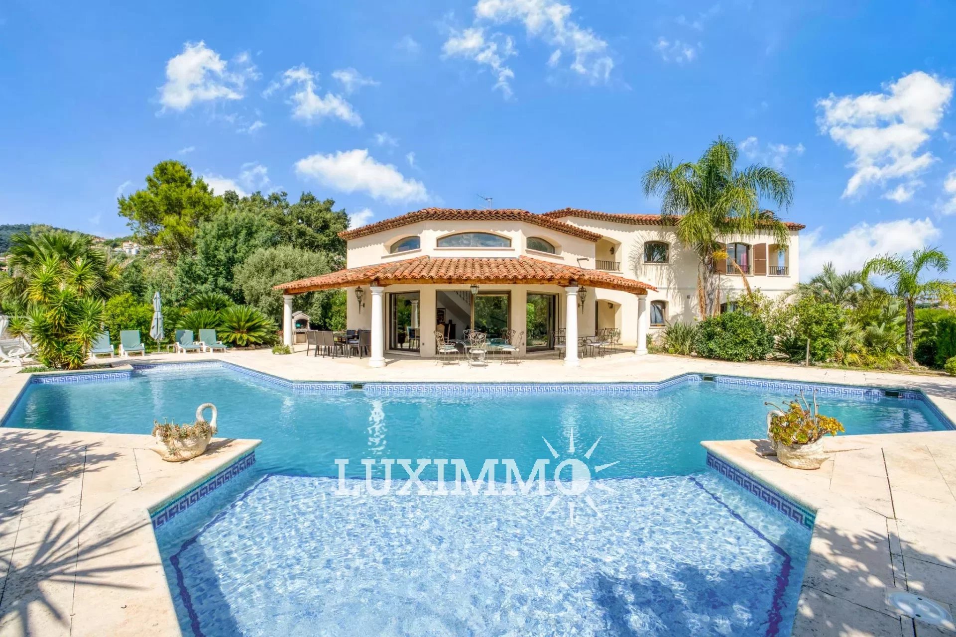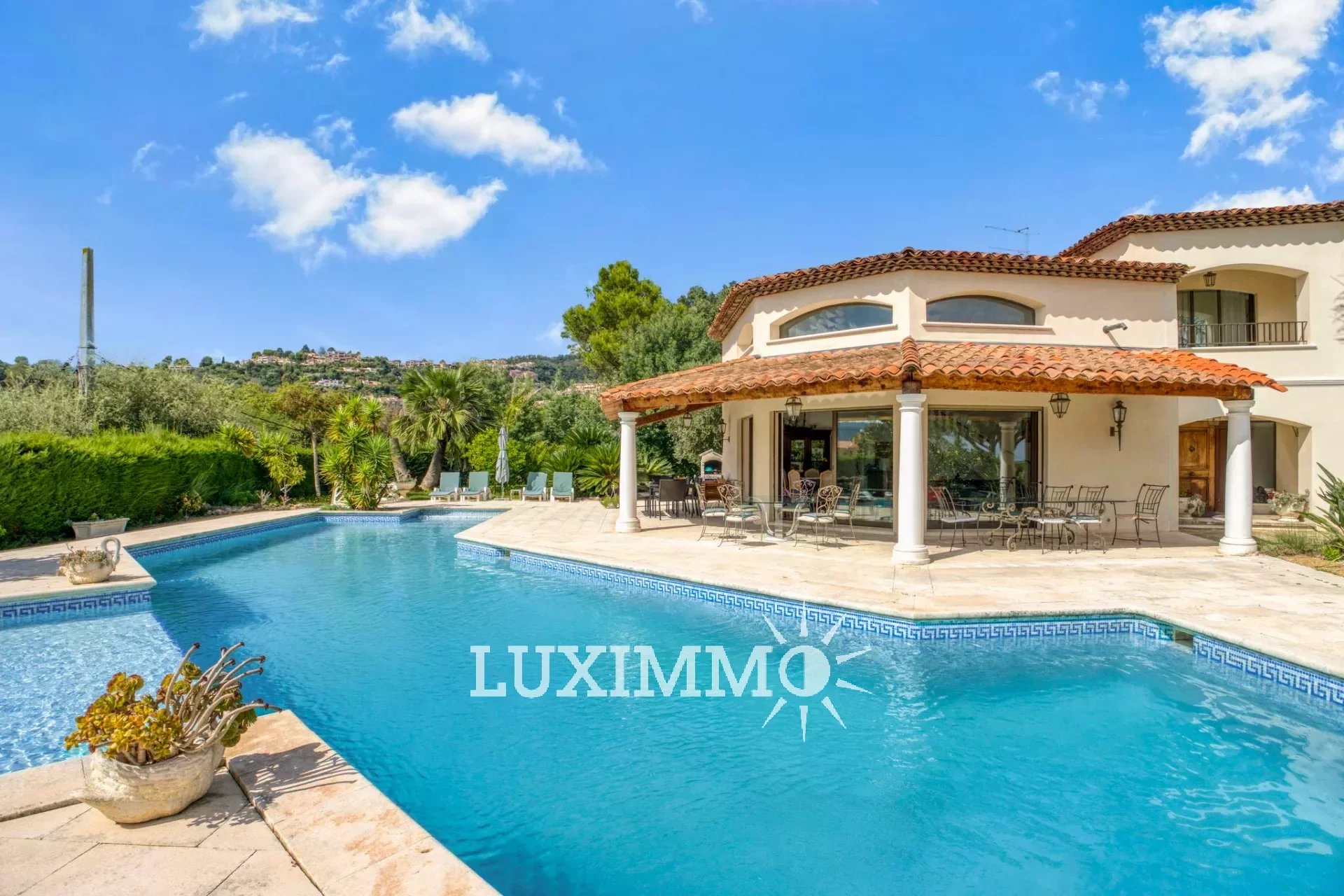 MANDELIEU- Situé dans un quartier résidentiel, bénéficiant d'une vue sur les collines environnantes, à proximité des plages, cette villa d'architecte de 265 m² est édifiée sur un terrain arboré de 1390 m² avec piscine.