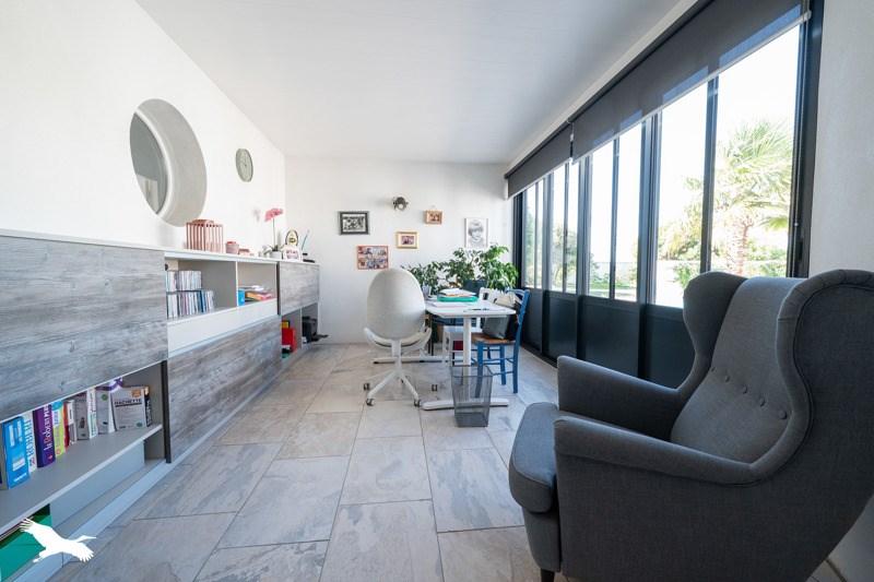 Villa de plain-pied située entre le centre de St Pierre d'Oléron et La Cotinière, offrant une spacieuse pièce de vie avec cuisine ouverte, six chambres, trois salles d'eau, un grand bureau, garage attenant et piscine.