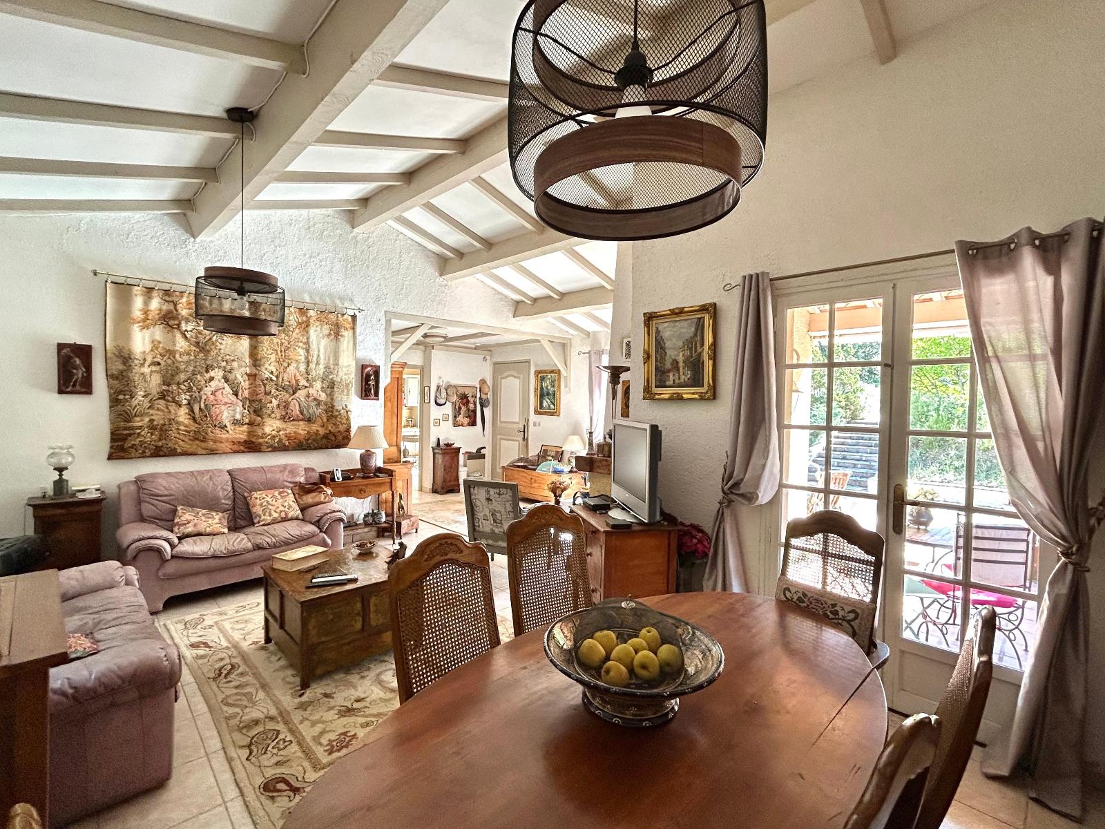 À vendre : Maison plain-pied T5 (120 m²) avec piscine et garage à Mourèze, dans un emplacement privilégié. - À VENDRE : Maison plain-pied T5 à Mourèze, un véritable havre de paix au cœur d'un emplacement privilégié. Cette belle propriété, s'étend sur un terrain généreux de 3180 m², offrant un cadre de vie exceptionnel. D'une superficie habitable de 120 m², cette maison indépendante vous séduira par son agencement fonctionnel. Elle dispose de 5 pièces, dont 4 chambres spacieuses, idéales pour accueillir votre famille ou vos amis. Vous trouverez également une salle d'eau, une salle de bains, ainsi que deux WC, garantissant un confort optimal pour tous les occupants. La cuisine, entièrement aménagée, est prête à accueillir vos talents culinaires. À l'extérieur, vous pourrez profiter d'une grande terrasse, parfaite pour des moments de détente en plein air. La propriété comprend également un garage et un espace de stationnement pouvant accueillir jusqu'à 4 véhicules. Pour les amateurs de loisirs, une piscine est présente, ajoutant une touche de luxe à votre quotidien. Cette maison offre également un potentiel très intéressant avec la présence d'une habitation secondaire de type 2 de 45 m², idéale pour des invités ou pour générer des revenus locatifs. Bien que des travaux soient à prévoir, cette propriété représente une opportunité rare sur le marché. Ne manquez pas cette chance de vivre dans un cadre idyllique à Mourèze, où tranquillité et confort se rencontrent. Honoraires à la charge du vendeur. Vous pouvez consulter les barèmes d'honoraires à l'adresse suivante : . Montant estimé des dépenses annuelles d'énergie pour un usage standard : entre 2 280 et 3 120 euros. Prix moyens des énergies indexés en 2023. Les informations sur les risques auxquels ce bien est exposé sont disponibles sur le site Géorisques : https://www.georisques.gouv.fr