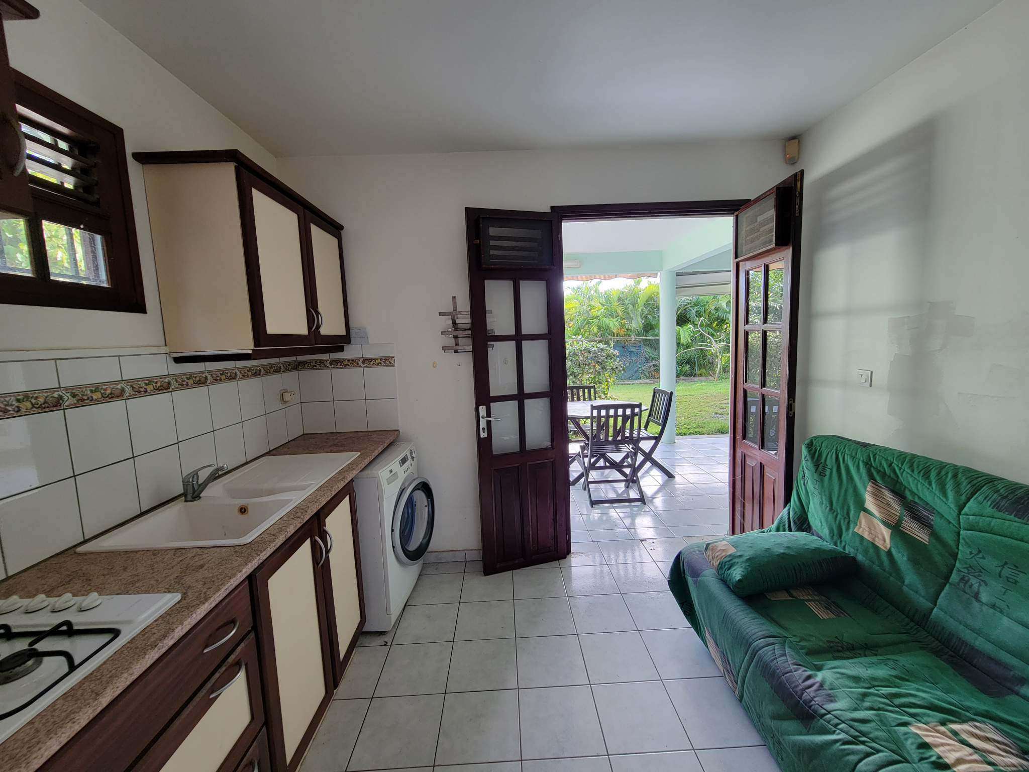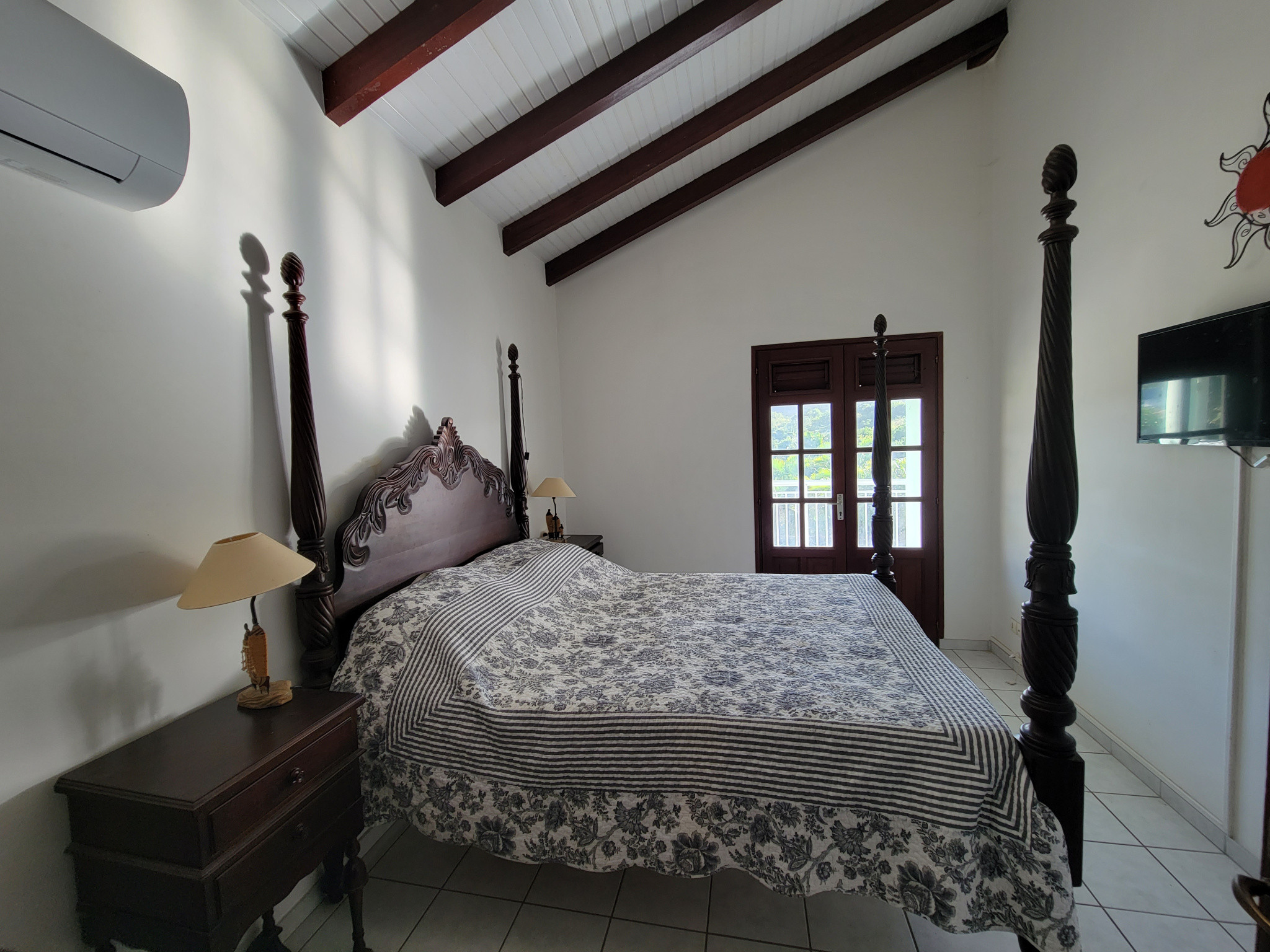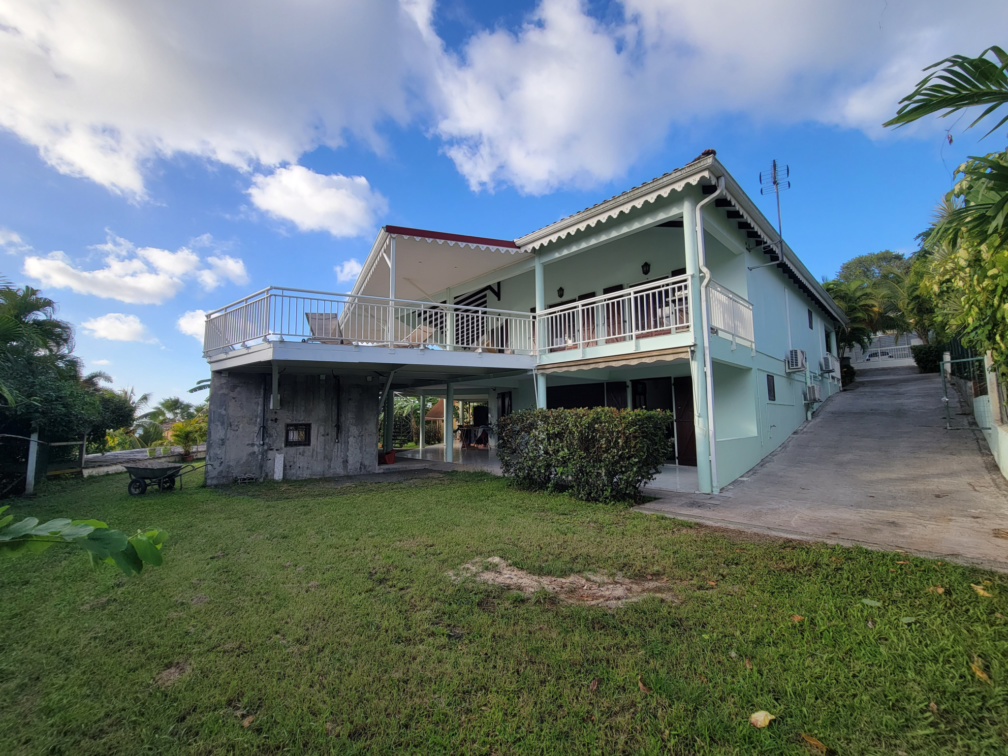 Dans l'un des quartiers les plus recherchés d'Anse Mitan, à deux pas des plages, des écoles et des commodités, découvrez ce superbe ensemble immobilier niché sur un terrain de 875 m2, offrant vue mer et piscine au sel.La villa principale T4 bis séduit par ses volumes et son cachet : vaste séjour d'environ 60 m2 avec charpente apparente, cuisine aménagée et équipée ouverte, mezzanine, 3 chambres climatisées dont une suite parentale avec dressing et salle d'eau, le tout prolongé par une grande terrasse conviviale face à la piscine.
