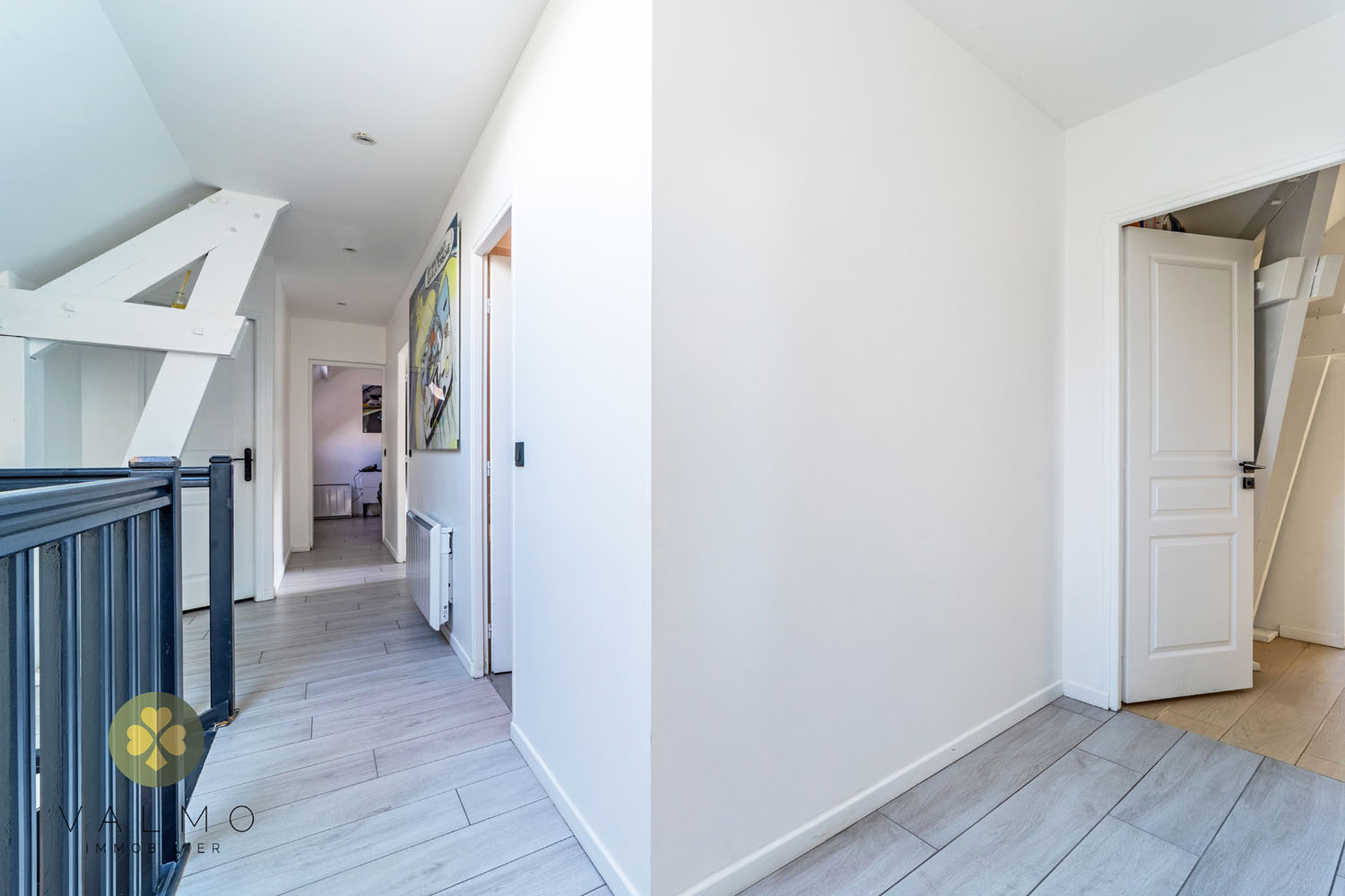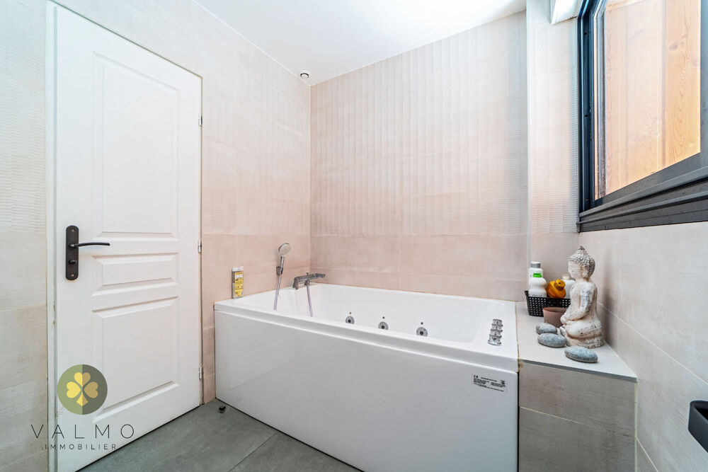 À l'étage : un dégagement, 4 chambres avec rangements dont une suite parentale de 19 m2 avec sa salle d'eau/wc, une salle-de-bains avec baignoire balnéo et un wc.