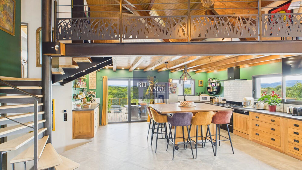 L'élégance d'une maison d'architecte au coeur d'un charmant village Ardéchois. Dans un cadre bucolique et apaisant, à proximité d'un village typique du sud de l'Ardèche, cette maison d'architecte de 180 m2 habitables allie avec brio style contemporain, volumes généreux et prestations de qualité.Dès les premiers pas, le charme opère : Pièce de vie sous plafond cathédrale, cuisine ouverte parfaitement équipée, lumière traversante et matériaux nobles créent une atmosphère chaleureuse et inspirante. Poutres apparentes, touches industrielles, mobilier sur mesure.Ici tout a été pensé dans le souci du détail. La maison se compose de 4 véritables chambres, idéales pour accueillir famille, amis ou créer un espace télétravail sans compromis. Côté confort : Une salle de bain spacieuse avec baignoire balnéo, douche italienne et WC Une seconde salle d'eau moderne avec douche Toilettes séparées pour plus de praticité À l'extérieur... la cerise sur le gâteau : une superbe piscine avec une vue à couper le souffle, parfaitement intégrée dans un jardin paysager, idéale pour se rafraîchir tout l'été et profiter pleinement de la douceur ardéchoise. Le tout dans un environnement calme, verdoyant et harmonieux.