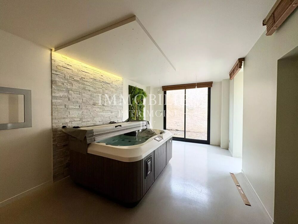 Le rez-de-chaussée dessert un salon/salle à manger, une cuisine entièrement aménagée et équipée ouvrant sur une cour close de murs, ainsi qu'un second salon avec un coin bar et un espace SPA.