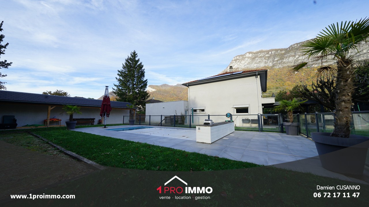 - À l'extérieur, vous pourrez profiter d'une magnifique piscine de 9 m x 4 m sécurisée par un store motorisé ainsi qu'un garde au corps vitré avec une ouverture protégeant les enfants.
