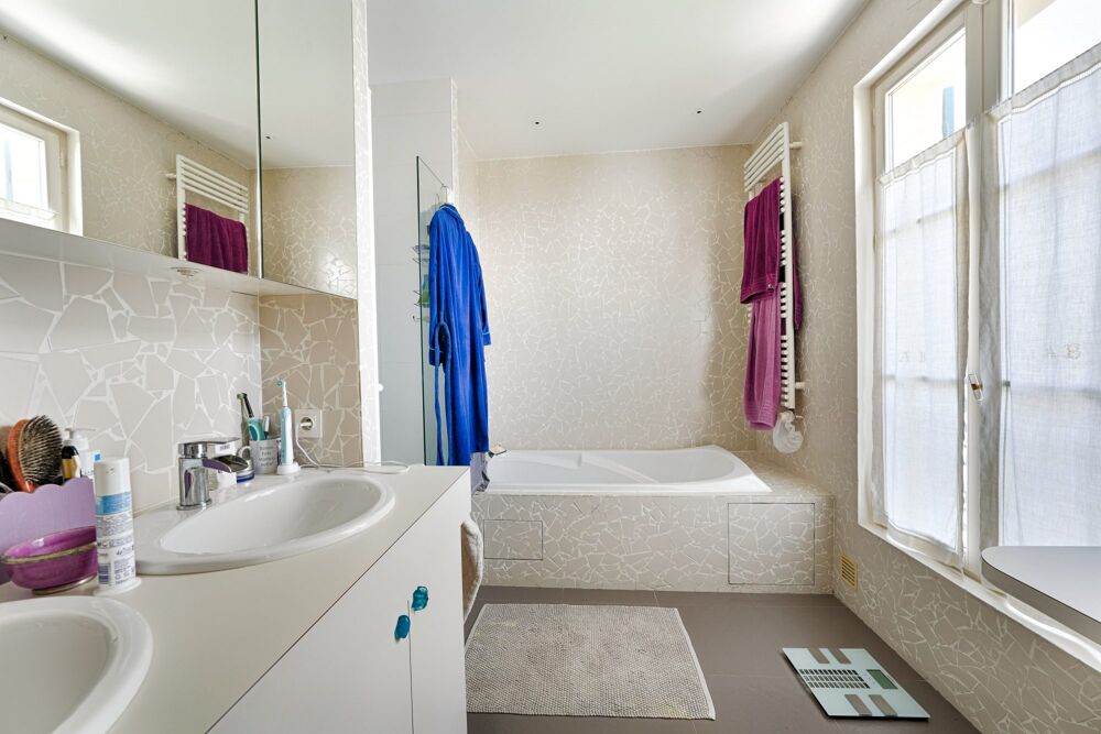 • Au premier étage : 3 chambres dont 1 suite parentale avec sa salle de bain (baignoire et douche) + WC et 1 salle de bain indépendante avec WC.