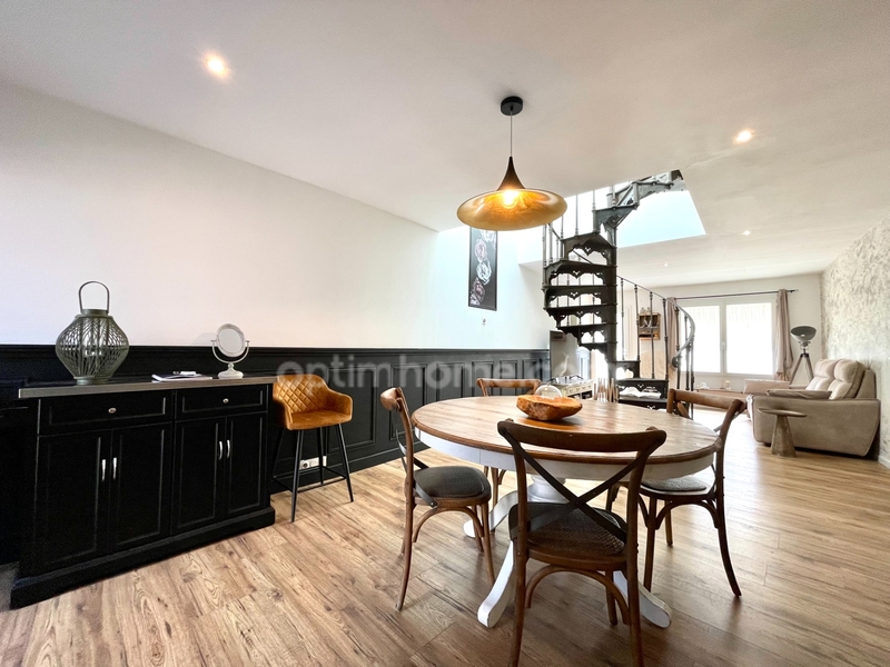 Entièrement rénovée avec goût, elle offre environ 90 m² de surface habitable répartis sur deux niveaux. Vous y trouverez un séjour chaleureux mis en valeur par un superbe escalier en fer forget, une cuisine équipée fonctionnelle, une salle d'eau moderne et une buanderie.