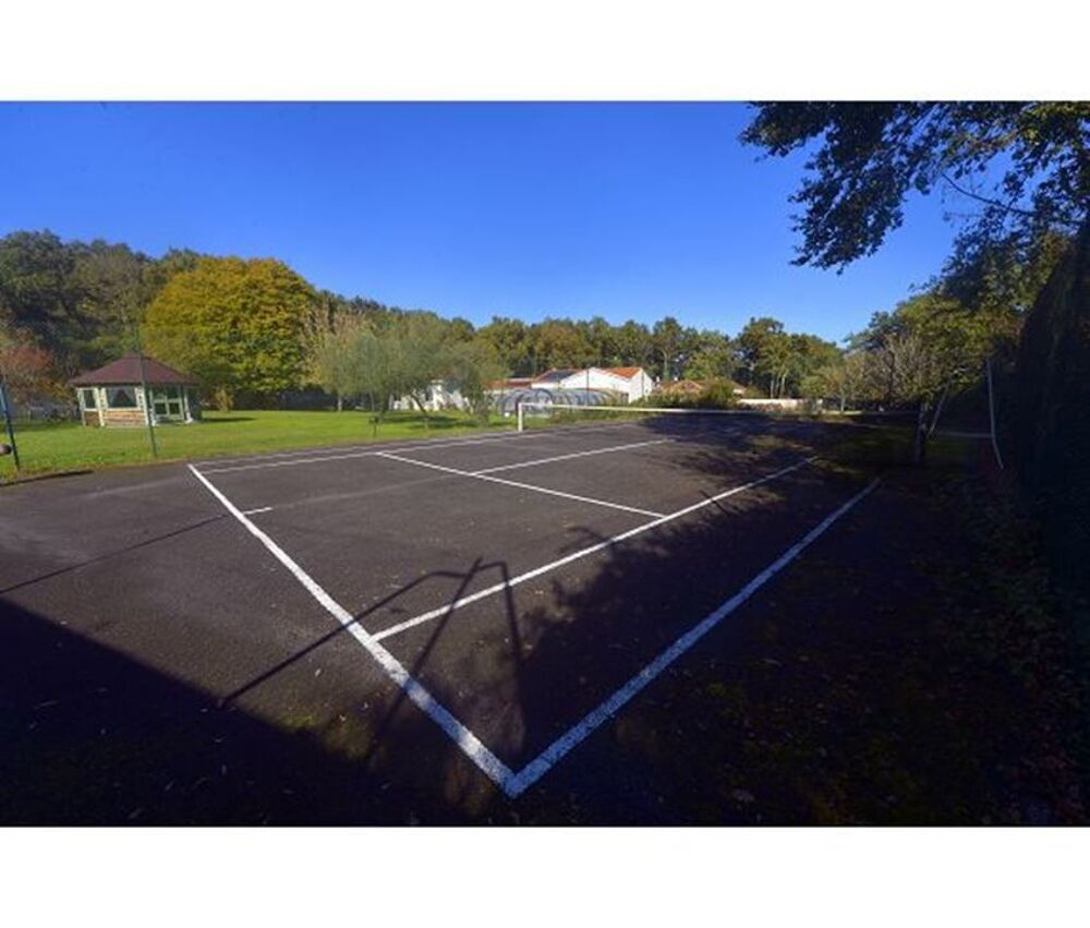 Ce bien immobilier dispose d'un parc arboré, clos et paysagé, agrémenté d'une piscine chauffée, d'un court de tennis et d'un spa.